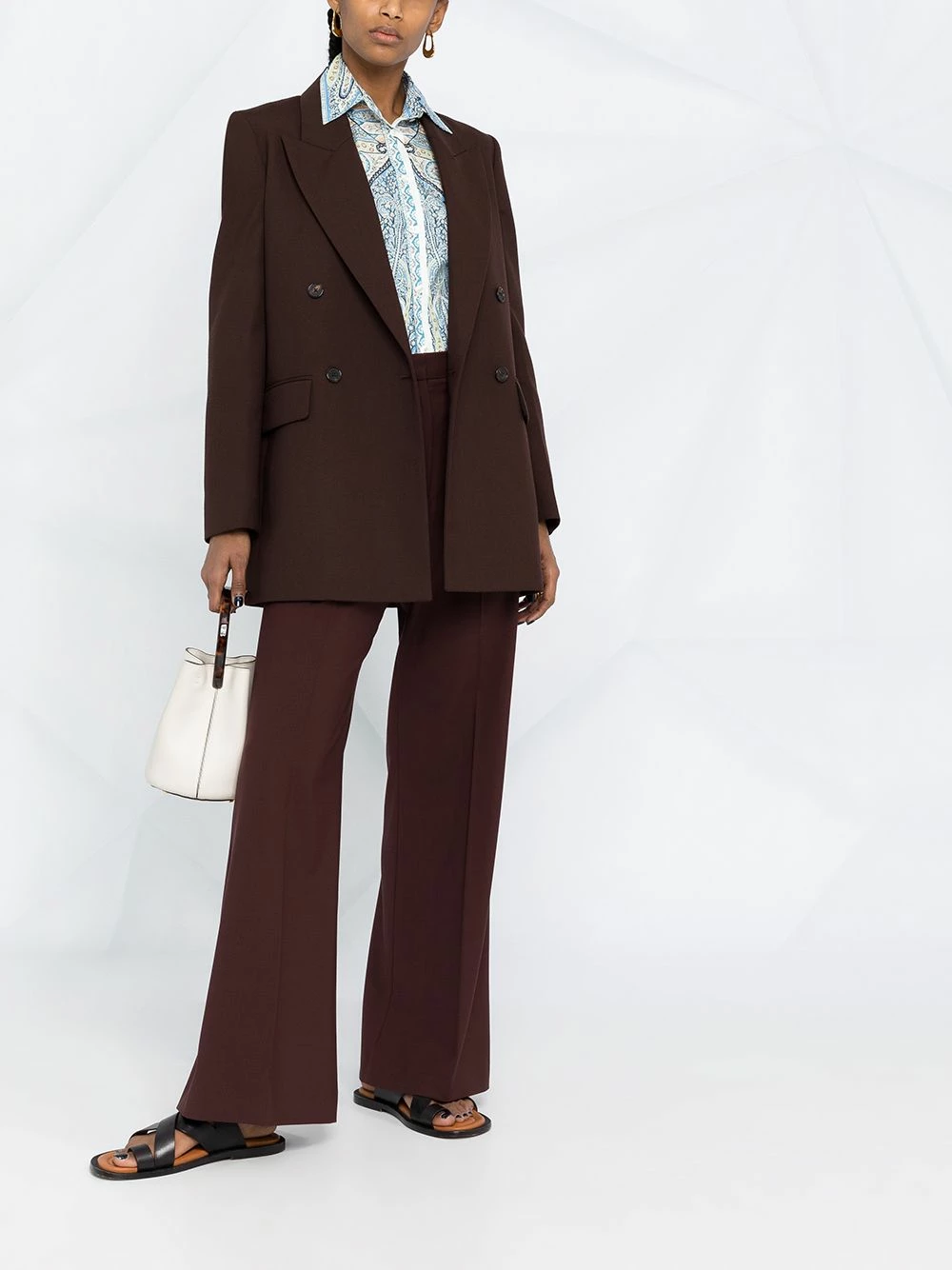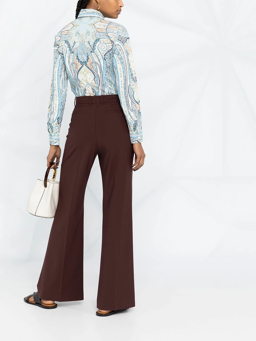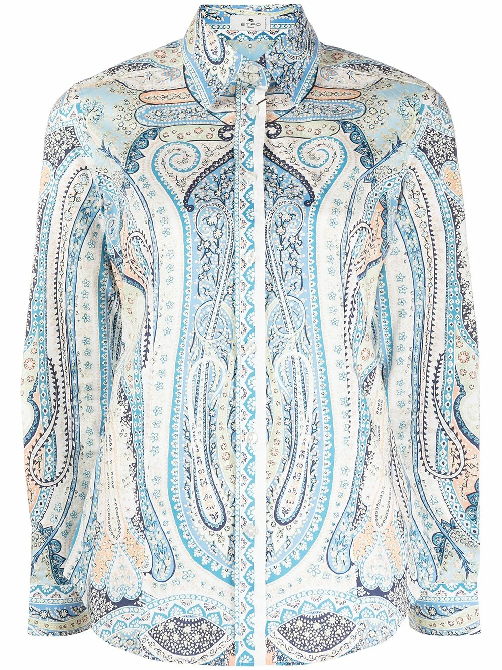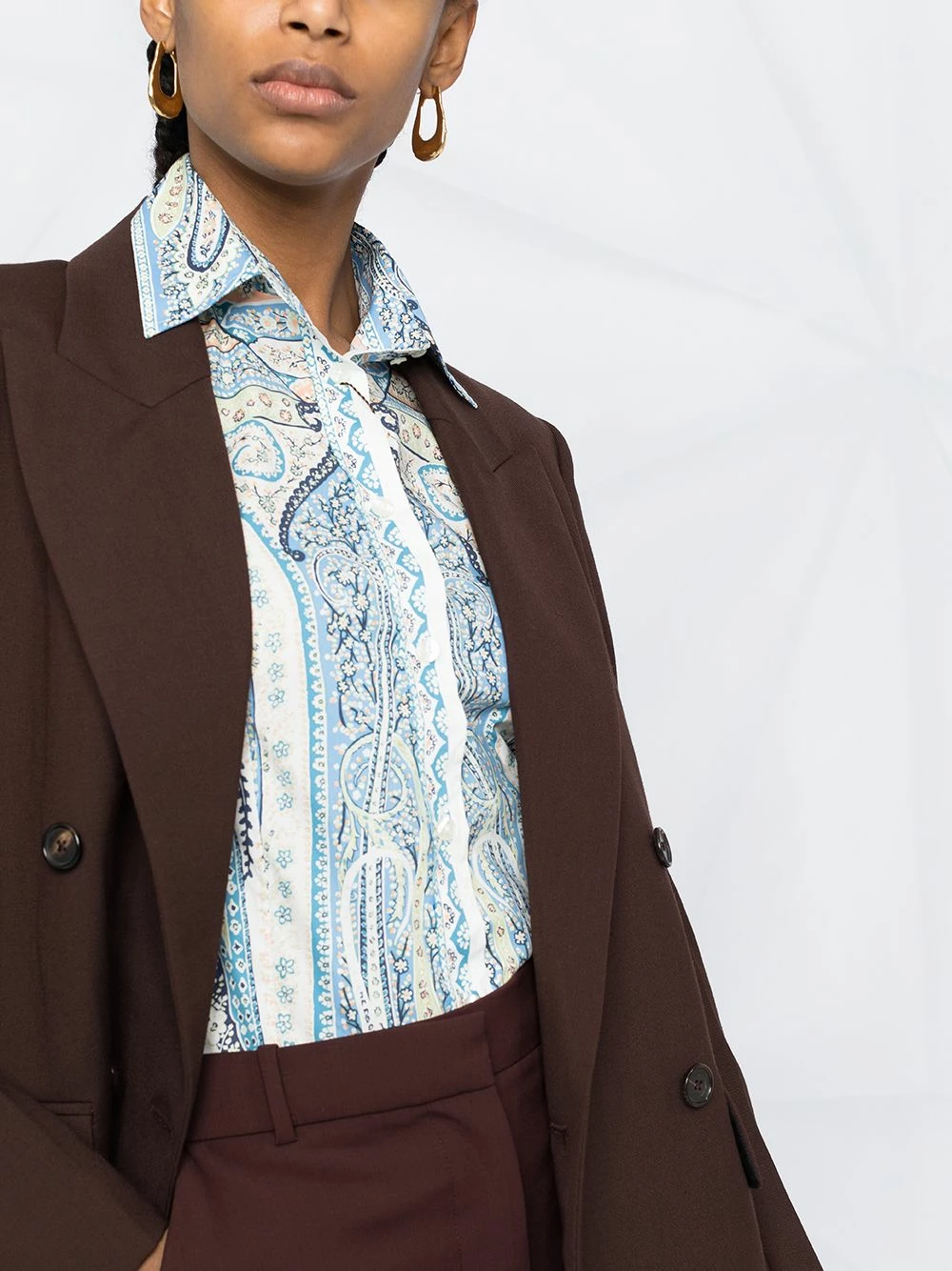 Motif cachemire, col pointu, manches longues, boutonnière sur le devant.