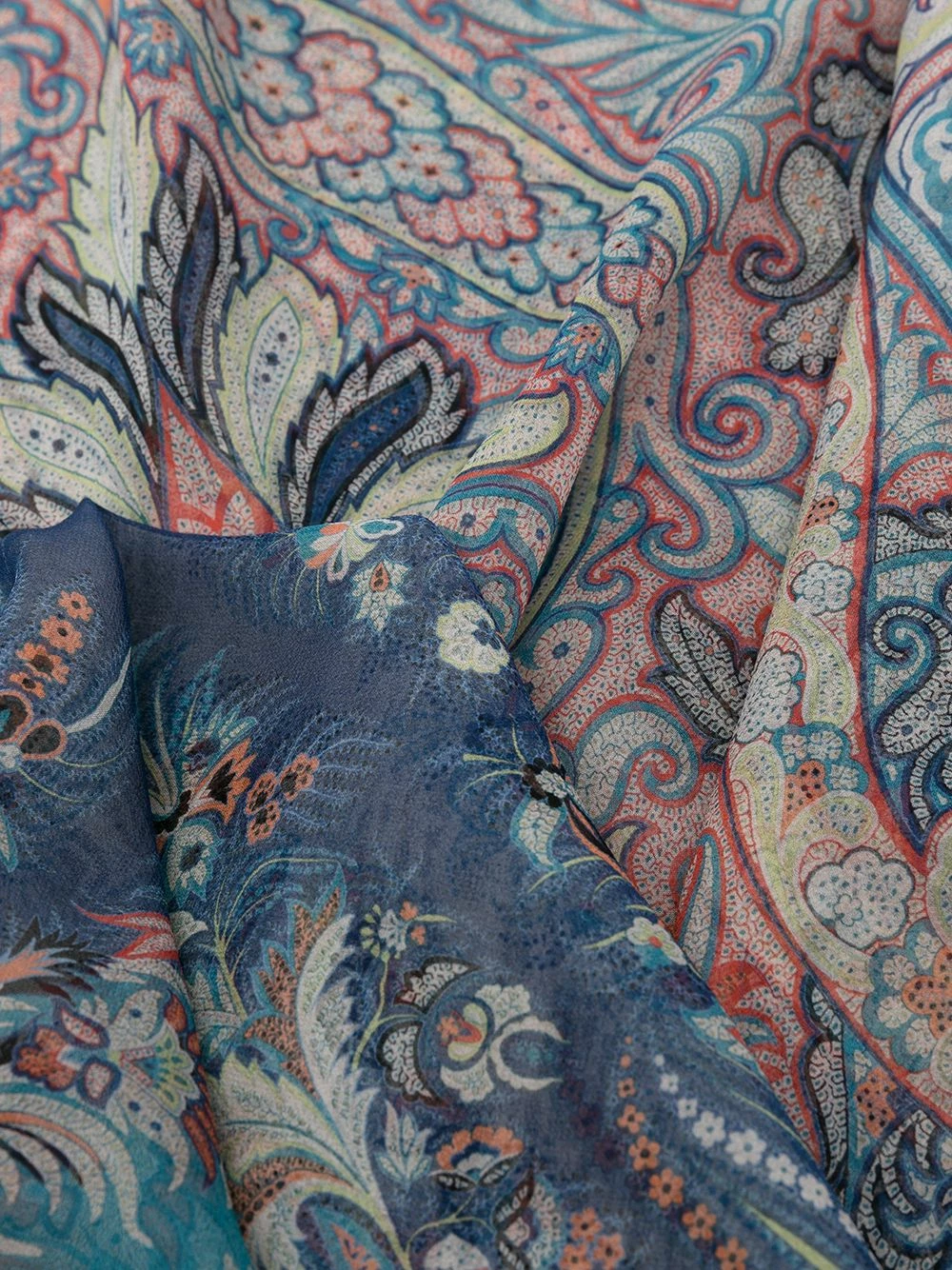 Motif cachemire, bordures à coutures apparentes. Matière : soie.