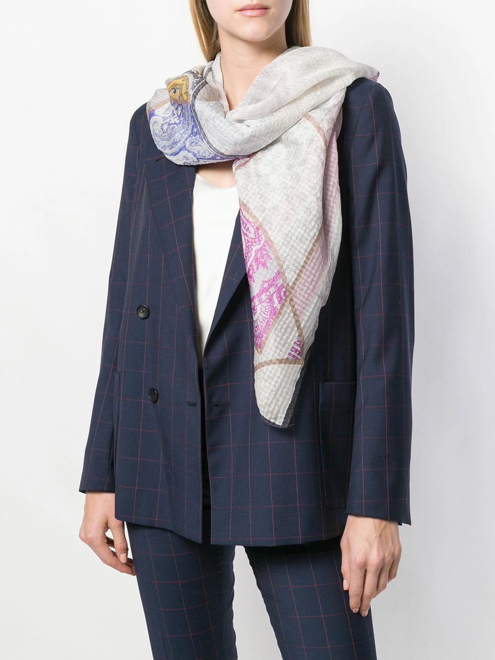 Foulard imprimé Etro avec imprimé géométrique et broderies. Couleur : gris.