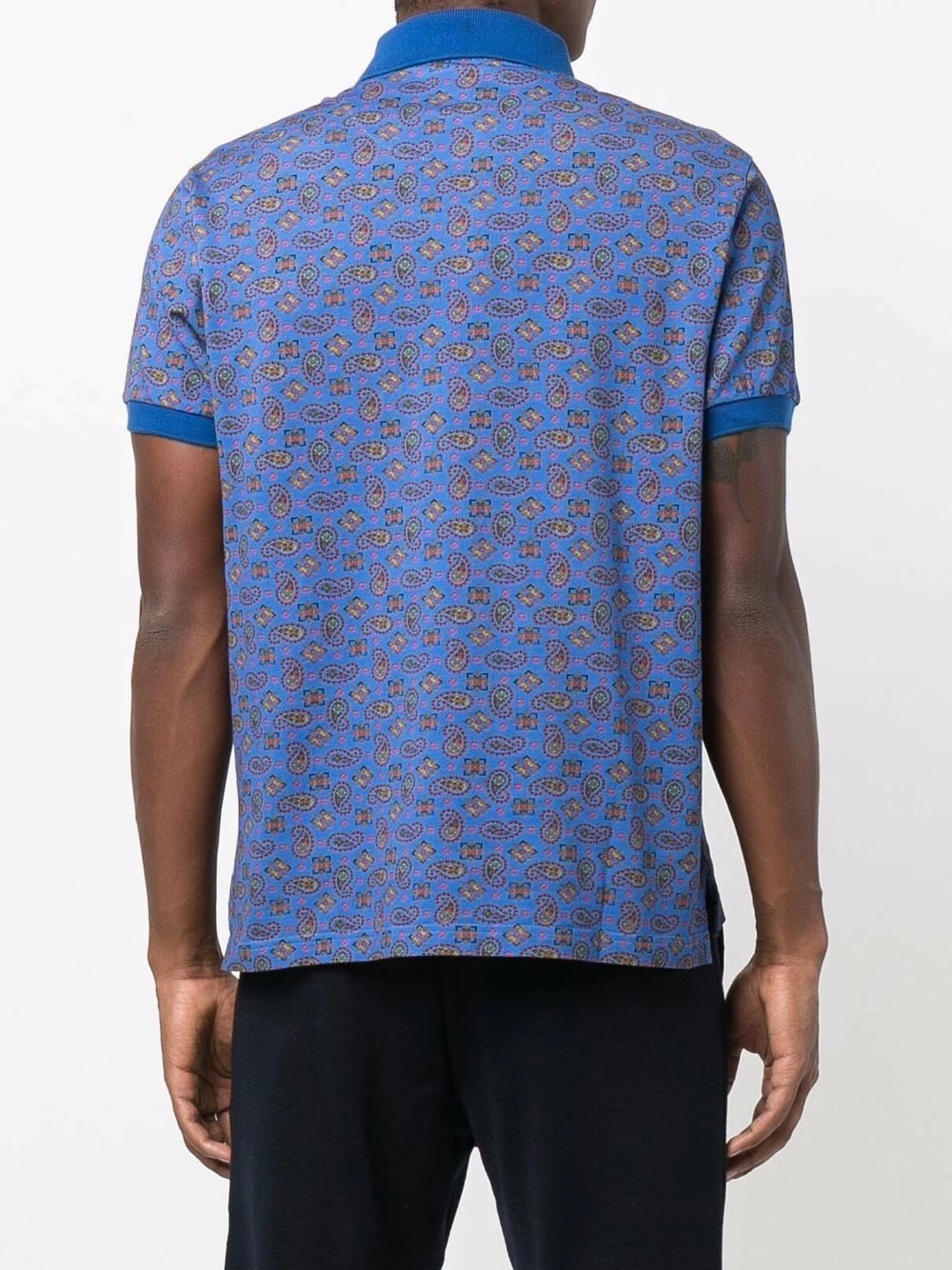 Motif cachemire, col classique, patte de boutonnage sur le devant, manches courtes, ourlet droit. Couleur : bleu. Matière : coton.