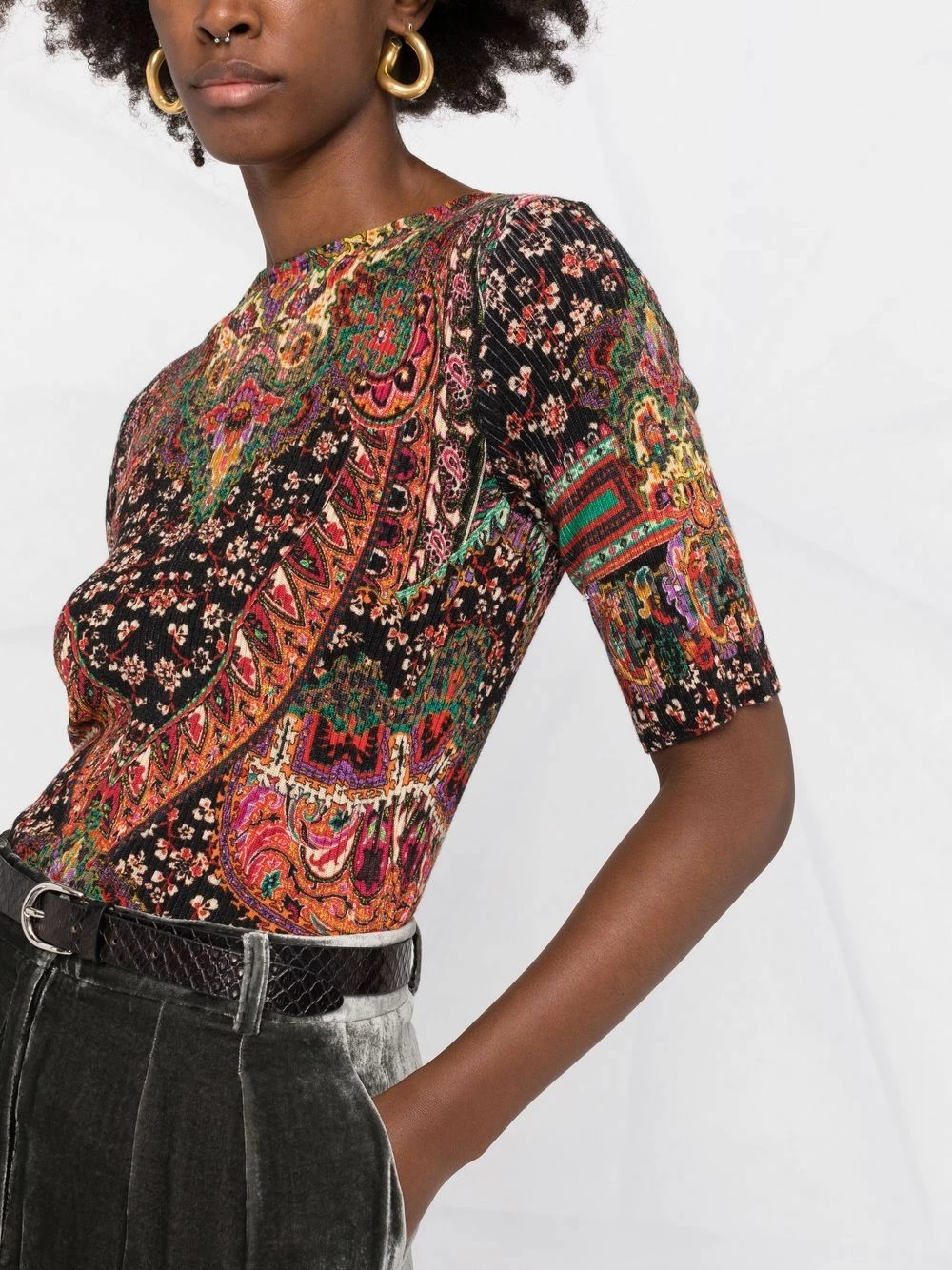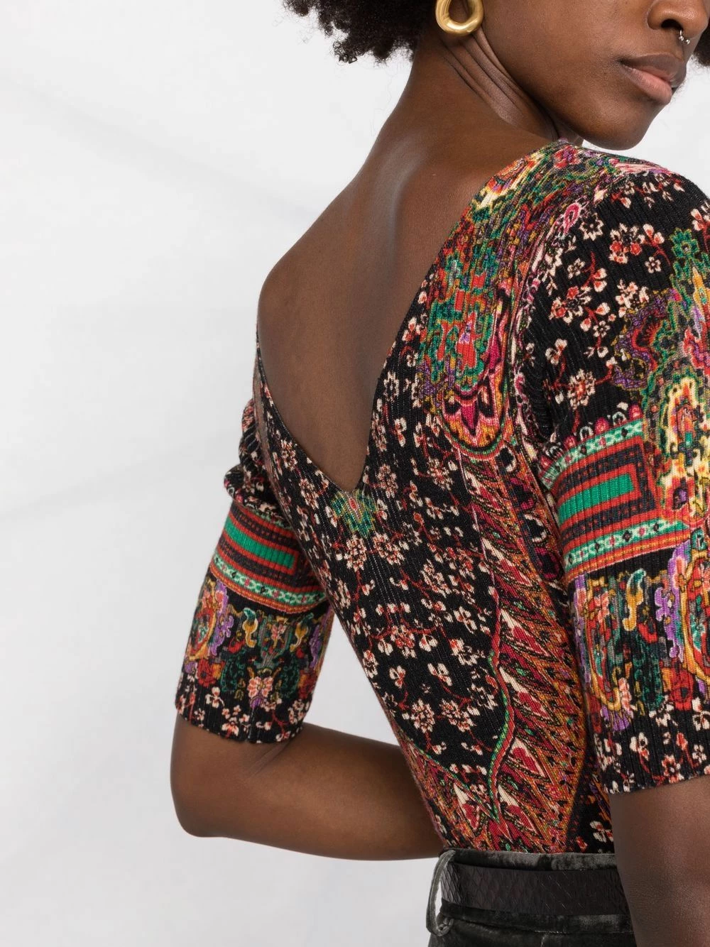 Maille nervurée, jacquard à motifs, col v au dos, manches courtes, ourlet droit. Couleur : multicolore. Matière : laine.