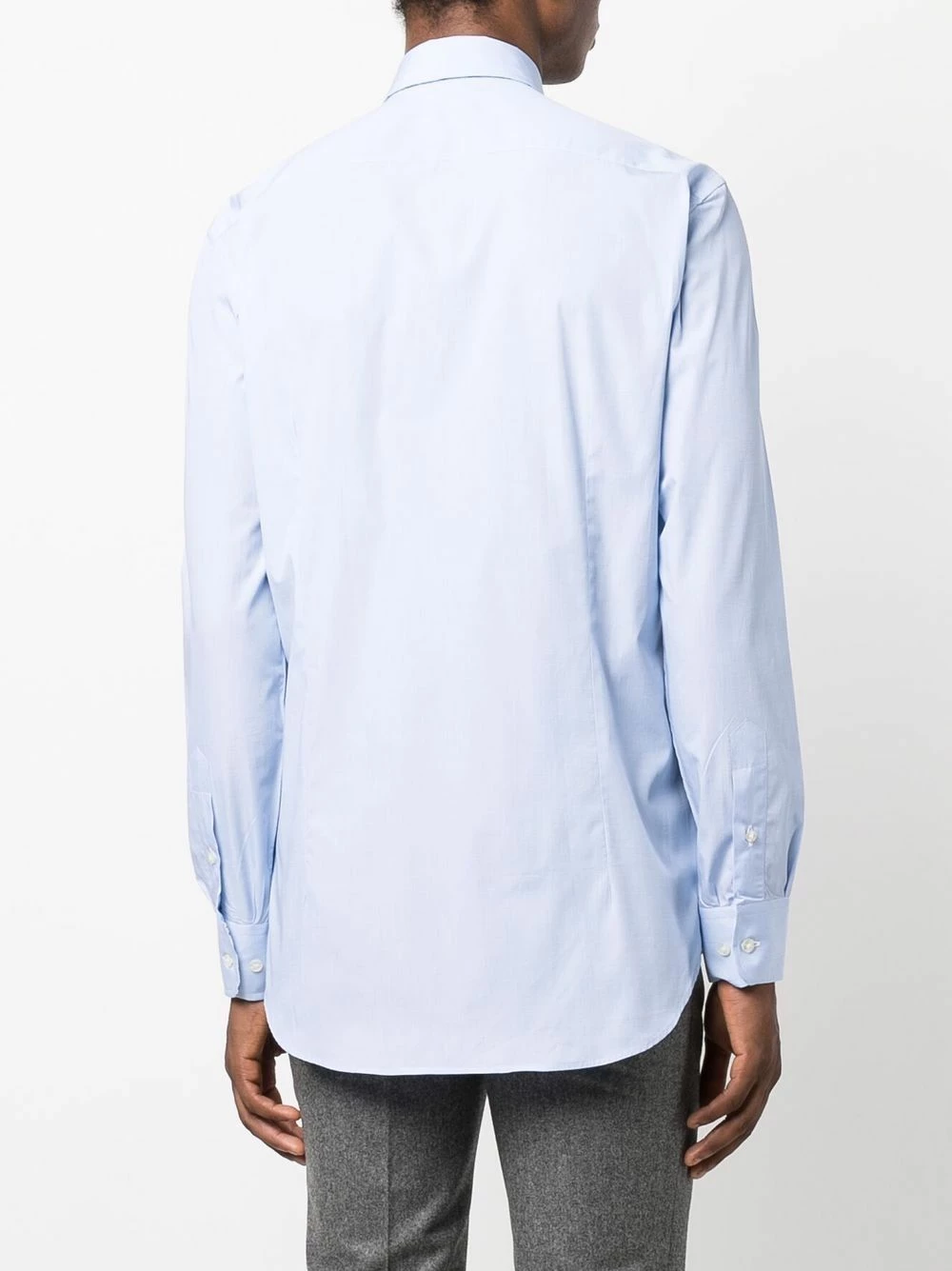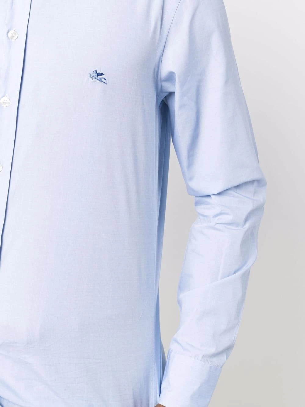 Logo brodé sur la poitrine, col boutonné, boutonnière sur le devant, manches longues, poignets boutonnés, ourlet incurvé. Couleur : bleu. Matière : coton.