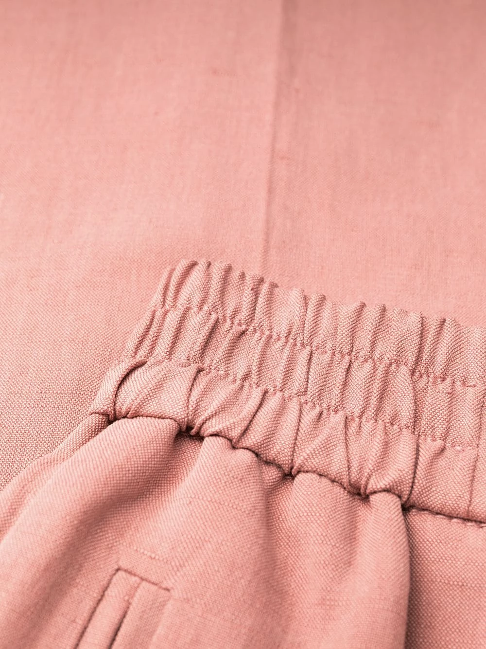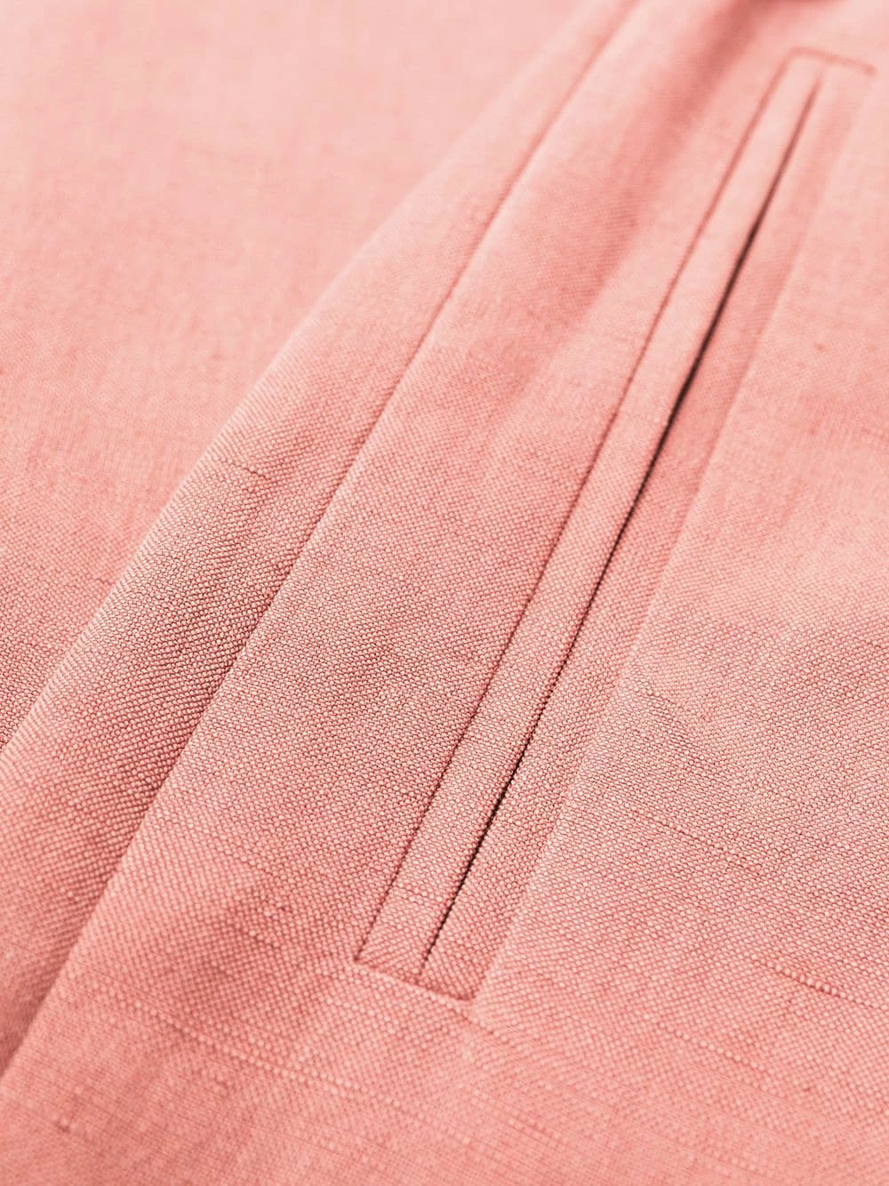 Plis marqués, taille haute, ceinture élastique, coupe droite, coupe courte, deux poches latérales passepoilées.