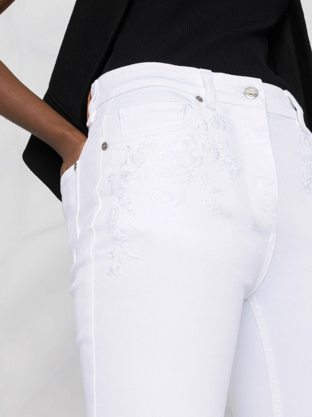 ETRO jean à fleurs brodées