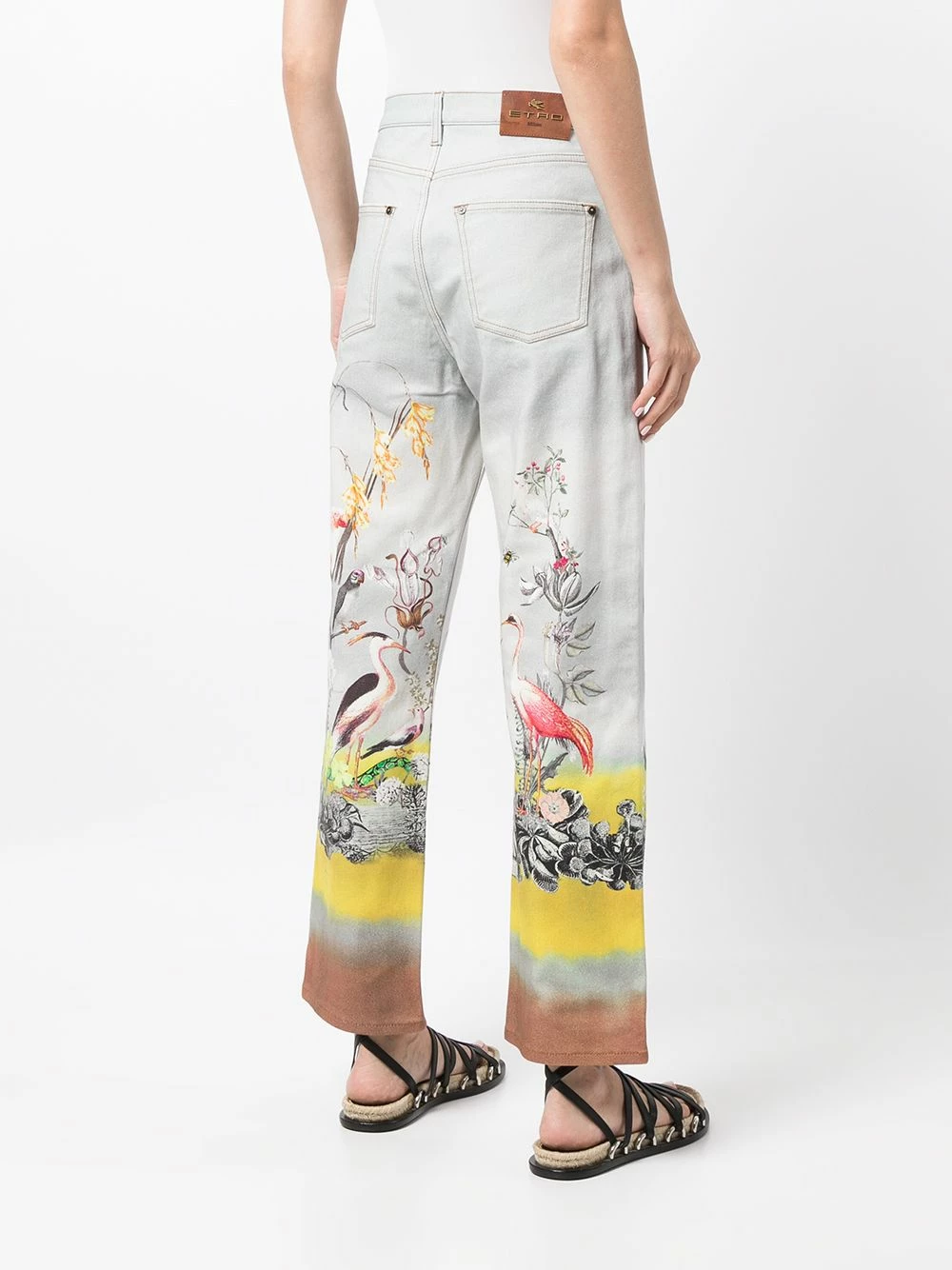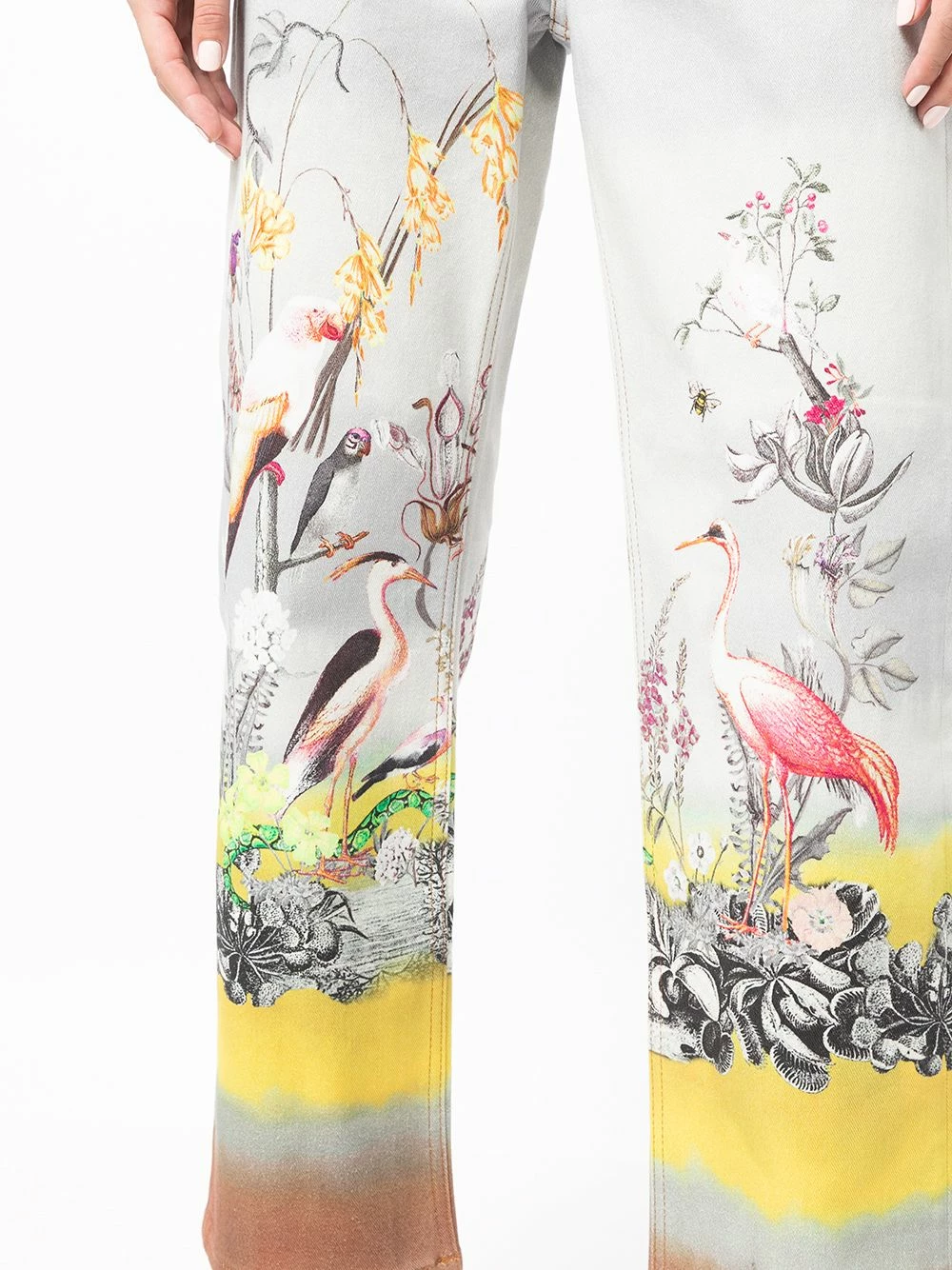 Taille haute, coupe droite, fermeture boutonnée, passants de ceinture, cinq poches classiques. Matière : coton mélangé.