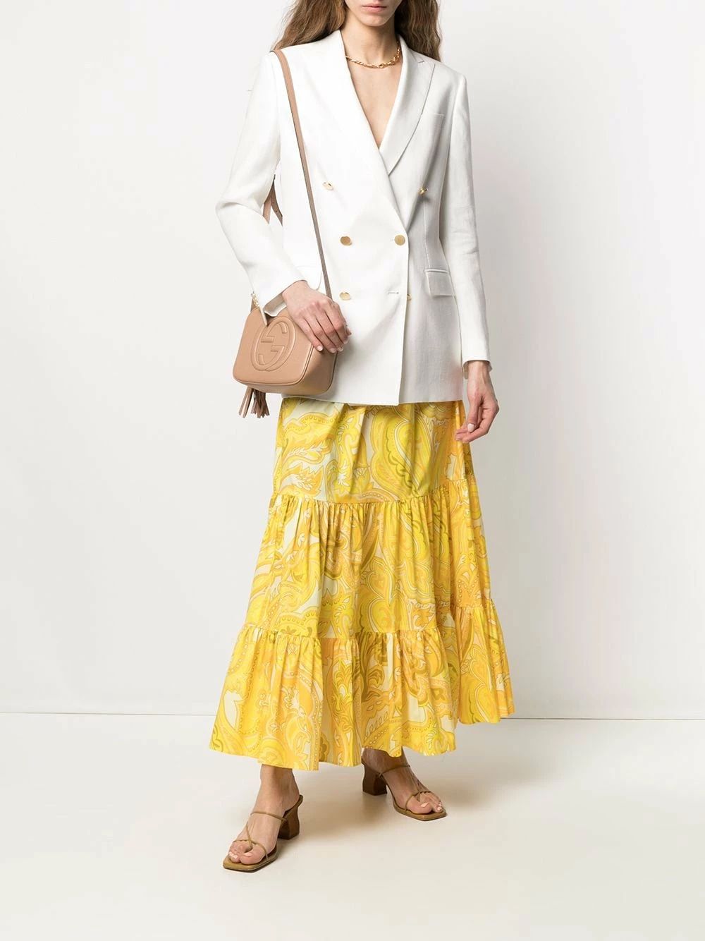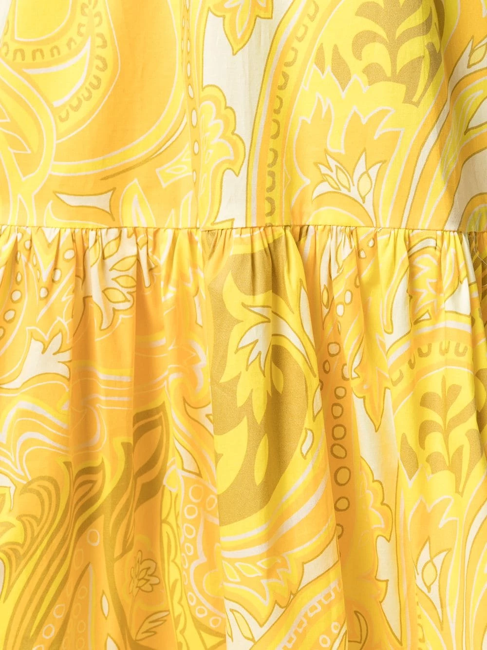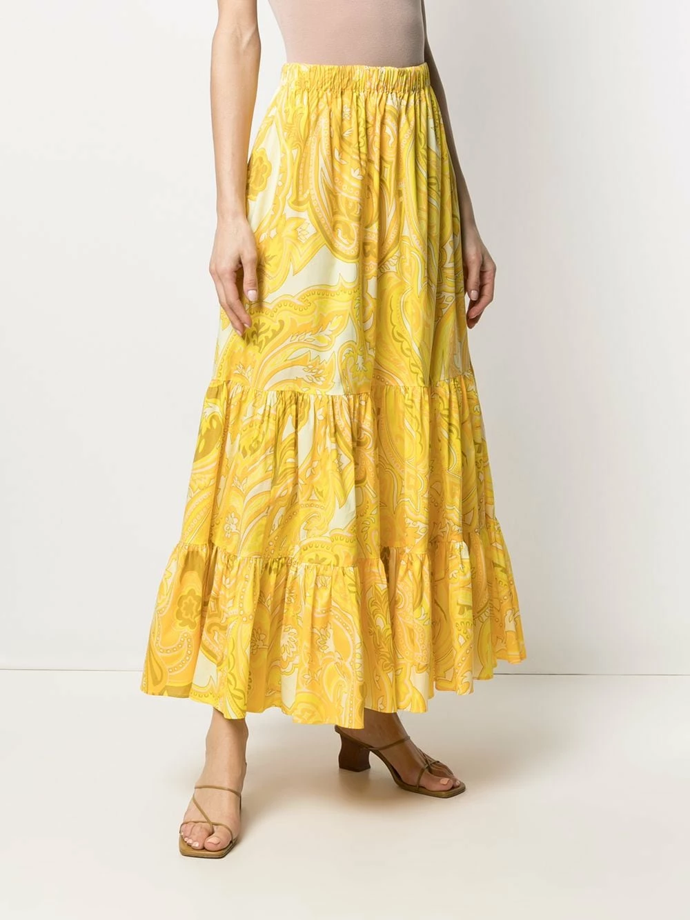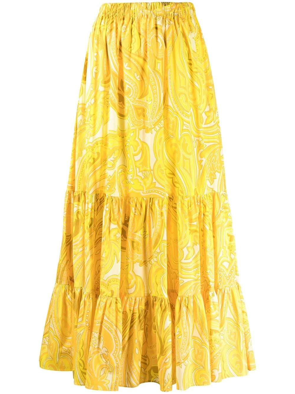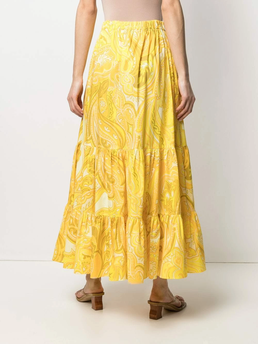 Design évasé, motif cachemire, détails de fronces, ceinture élastique, hauteur cheville. Couleur : Jaune.
