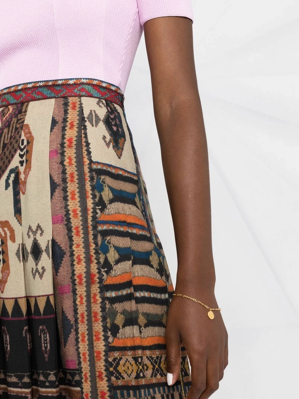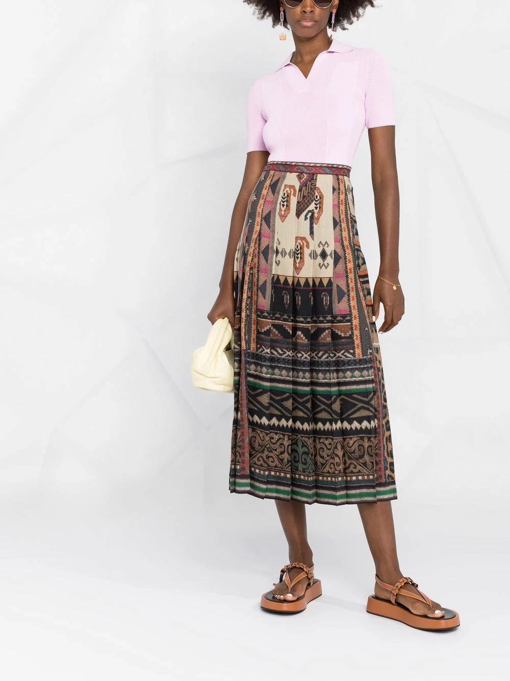 Imprimé géométrique, taille haute, coupe mi-longue.