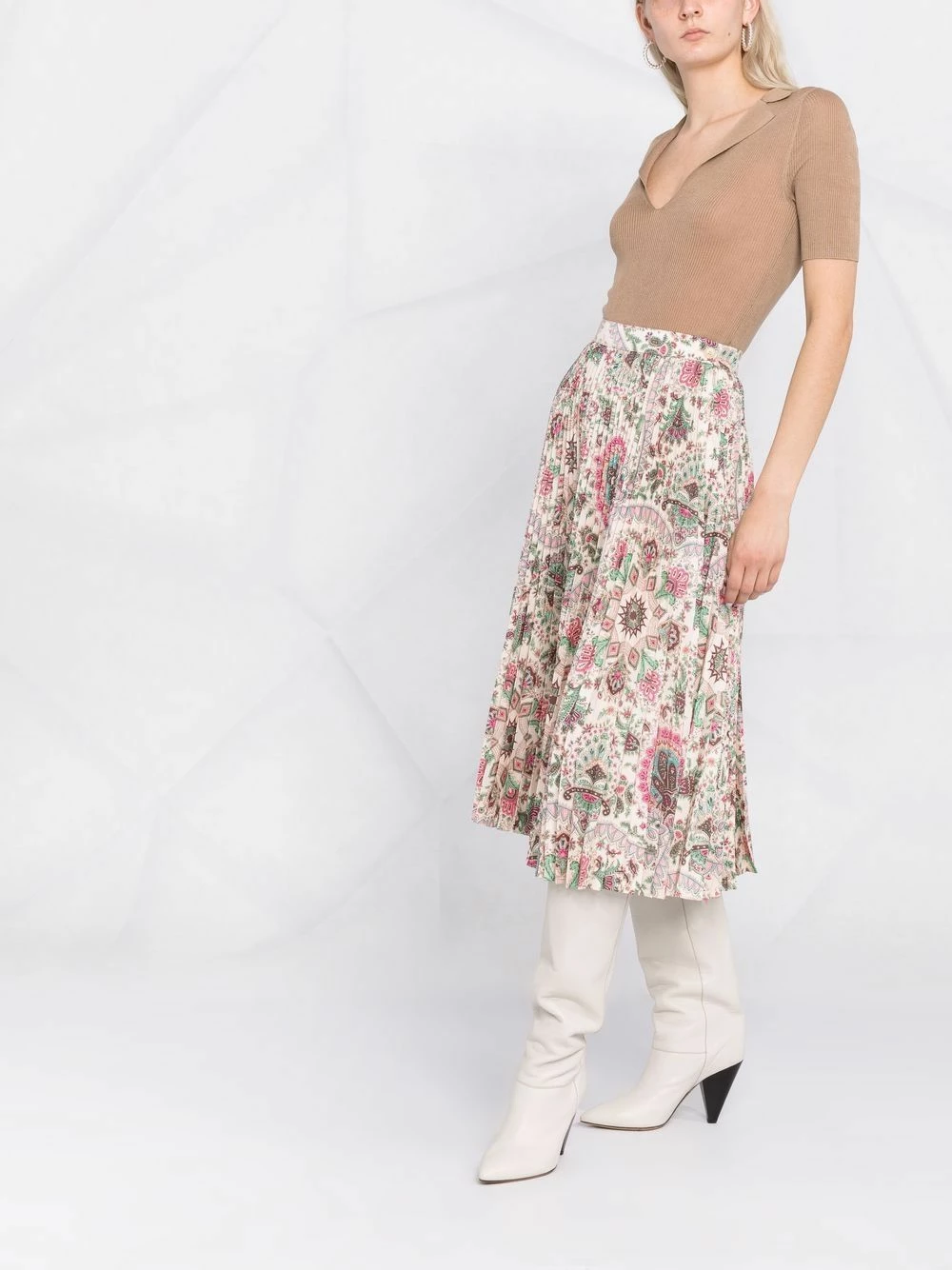 Motif cachemire, détails de plis, coupe trapèze. Couleur : multicolore.