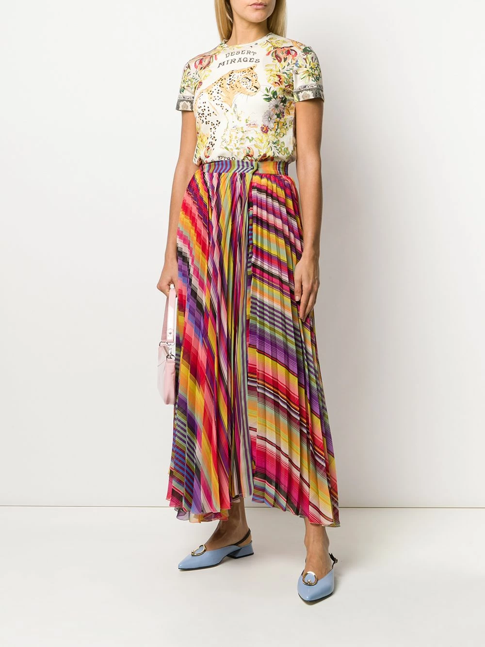 Jupe plissée à rayures Etro avec taille haute et longueur medium.
