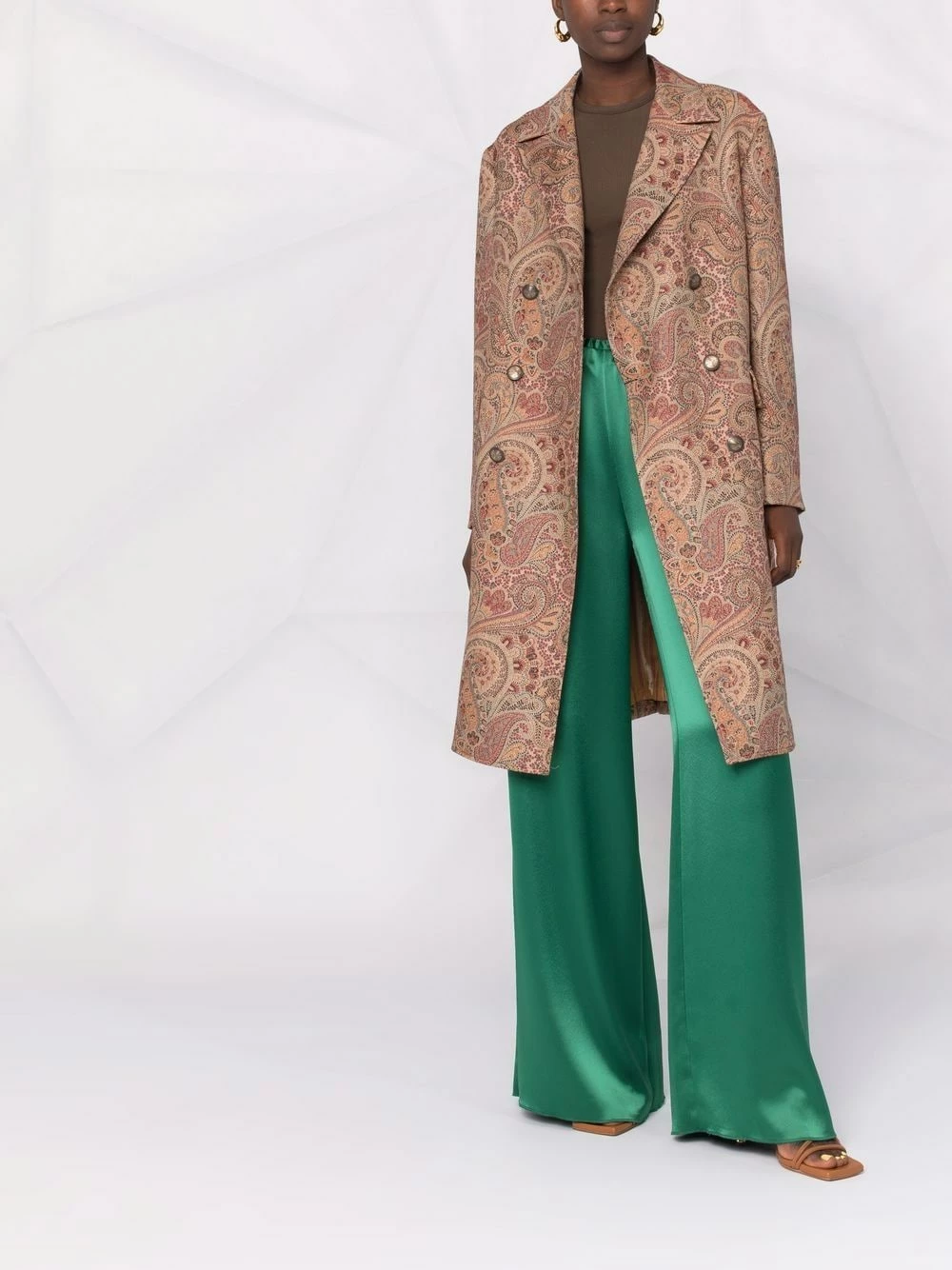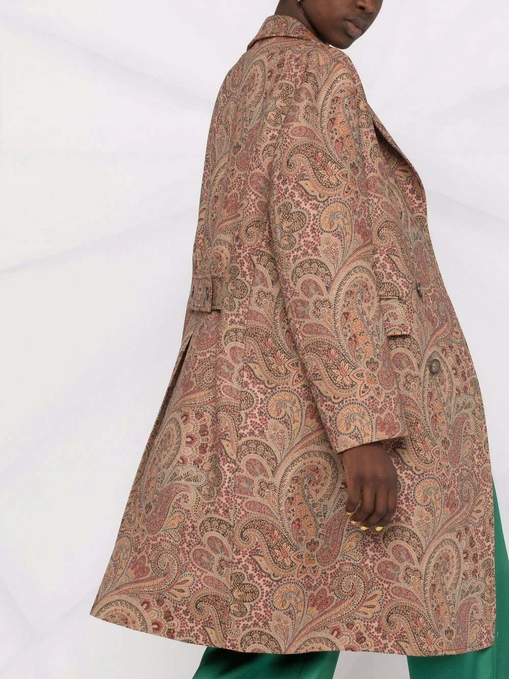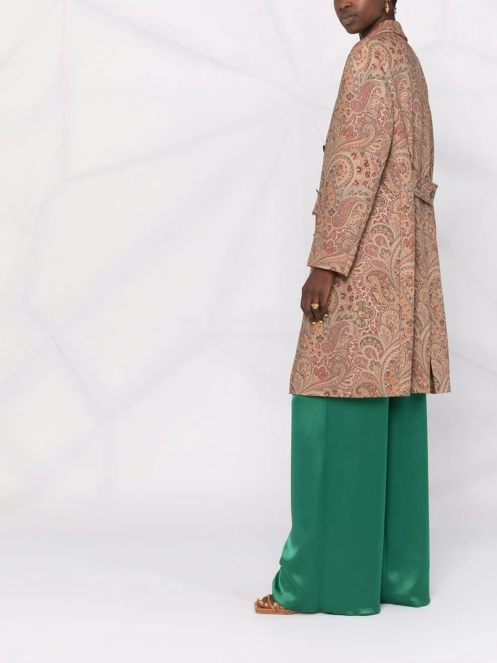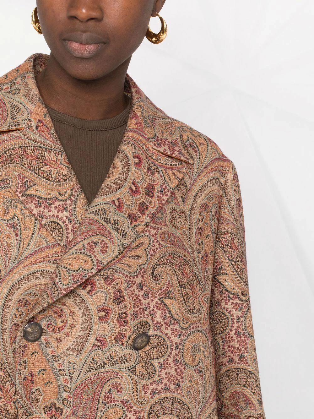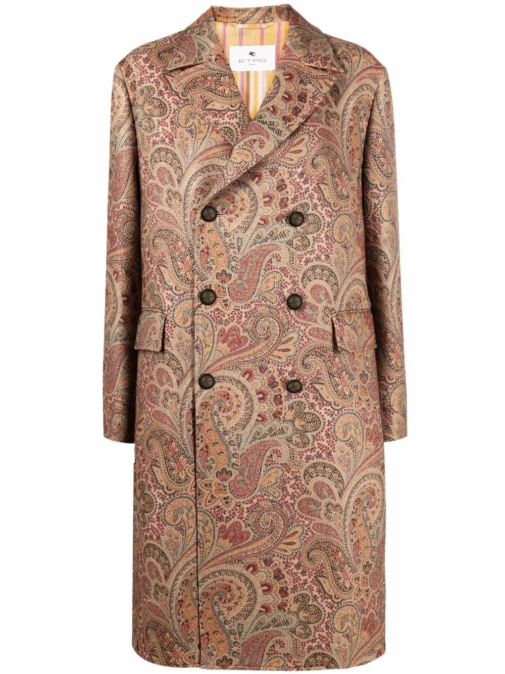 Motif cachemire, revers crantés, boutonnière sur le devant, manches longues, deux poches à rabat sur le devant. Couleur : multicolore. Matière : laine.