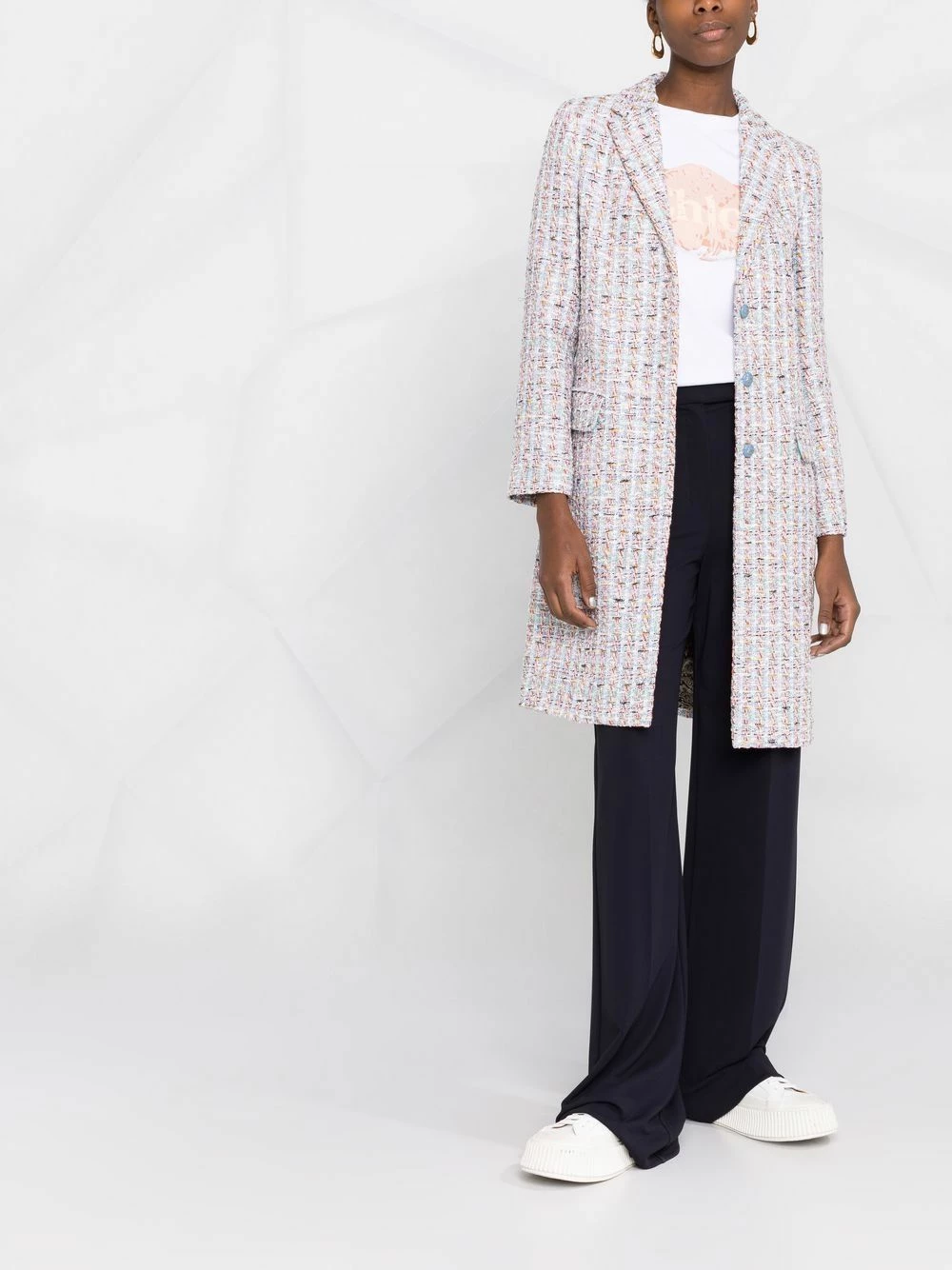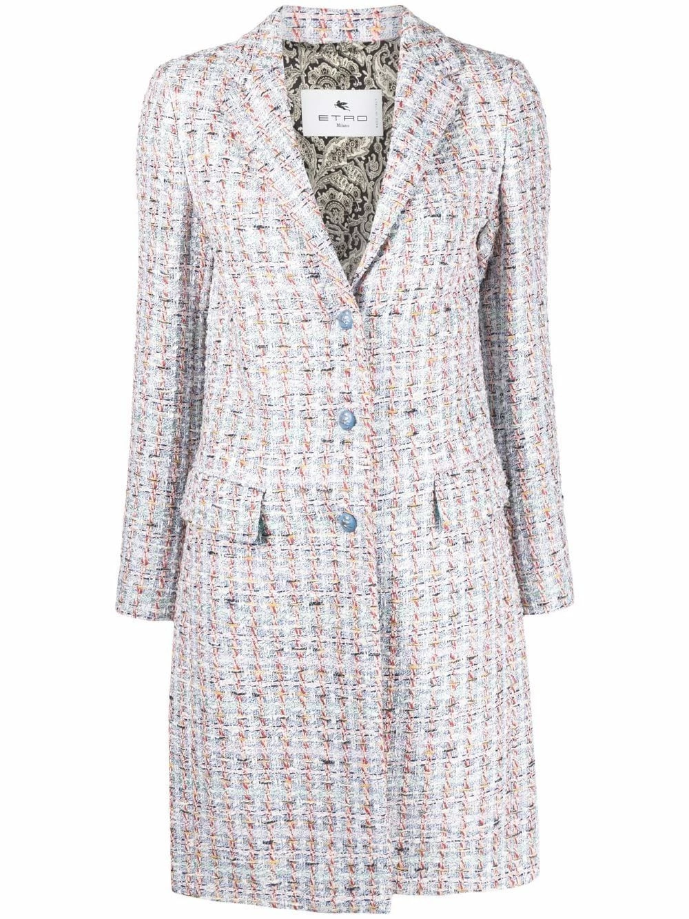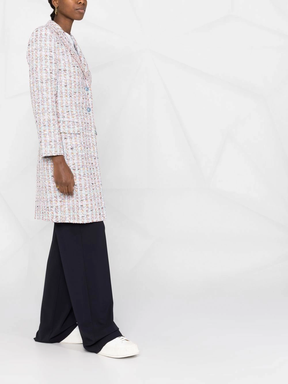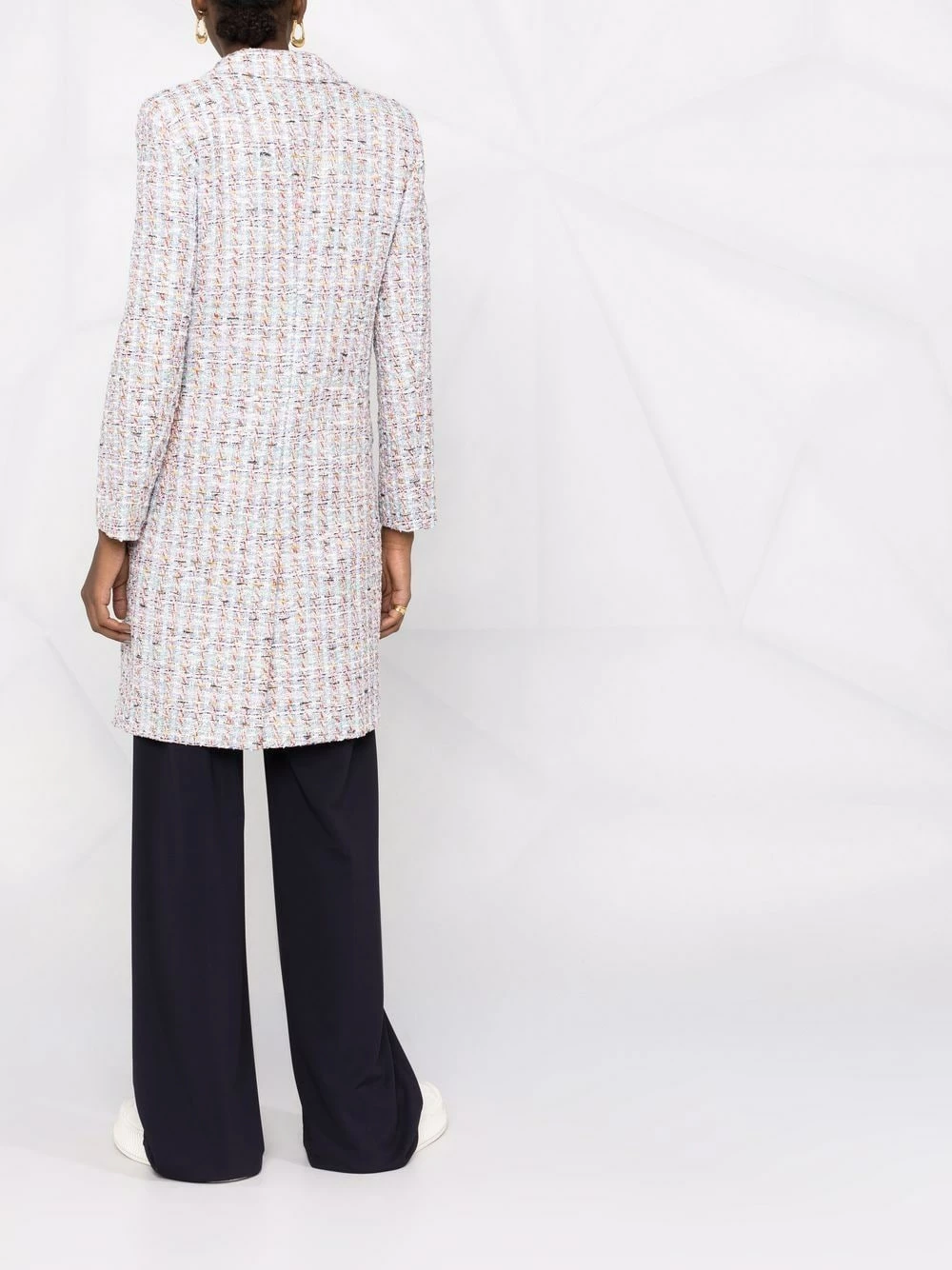 Tweed, boutons à logo embossé, boutonnière sur le devant, revers crantés, deux poches à rabat sur le devant, manches longues, longueur au dessus du genou. Couleur : multicolore. Matière : coton mélangé.