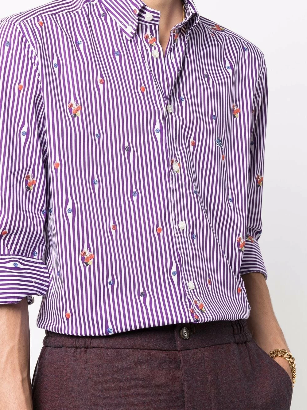 Imprimé à rayures, patte de boutonnage sur le devant, col classique, manches longues, poignets boutonnés, ourlet incurvé. Couleur : violet. Matière : coton.