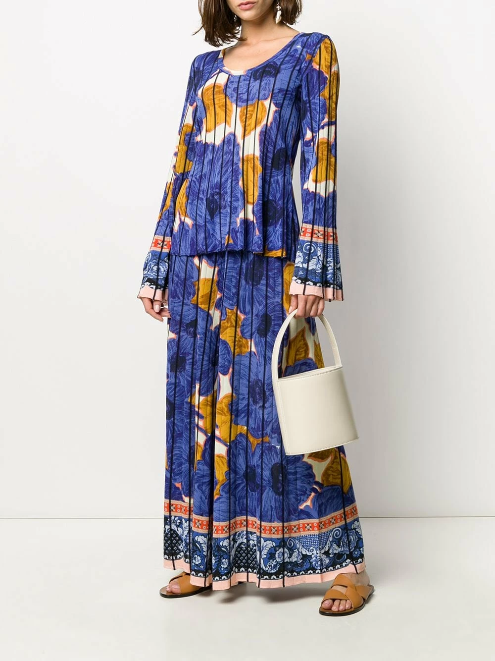 Pantalon palazzo à fleurs en coton mélangé Etro avec ceinture élastique, en tricot, coupe ample et longueur classique. Couleur : bleu.
