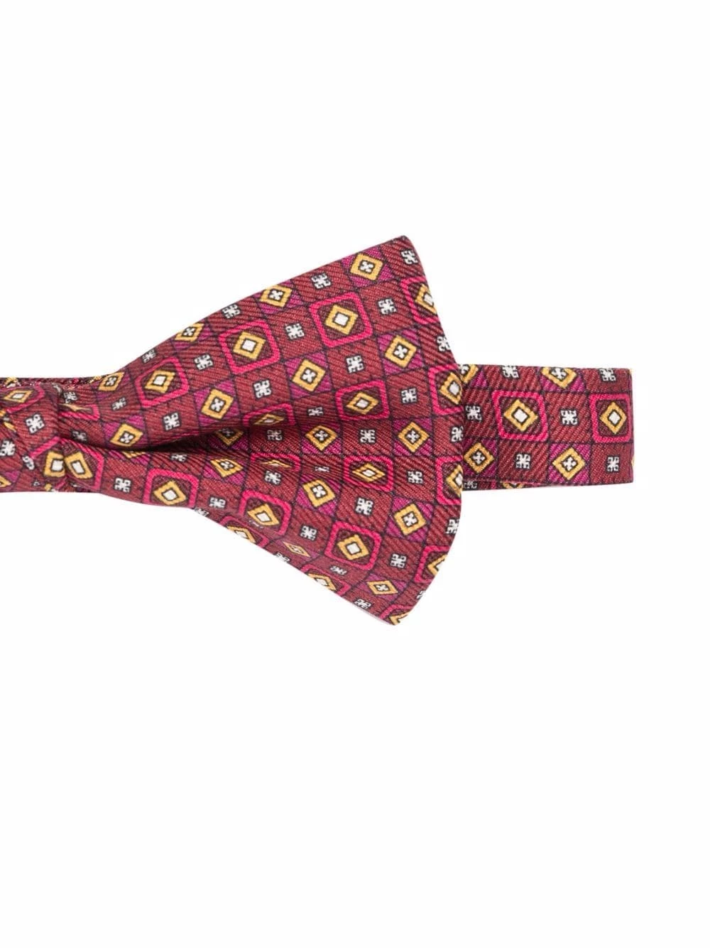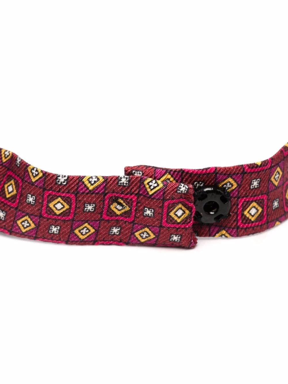 Détail de nœud, motif géométrique, boutonnière à l’arrière. Matière : soie.