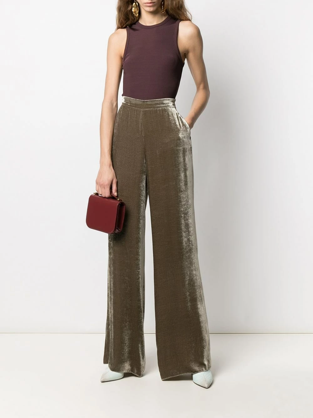 Effet velours, taille haute, ceinture élastique, design à enfiler, coupe ample.
