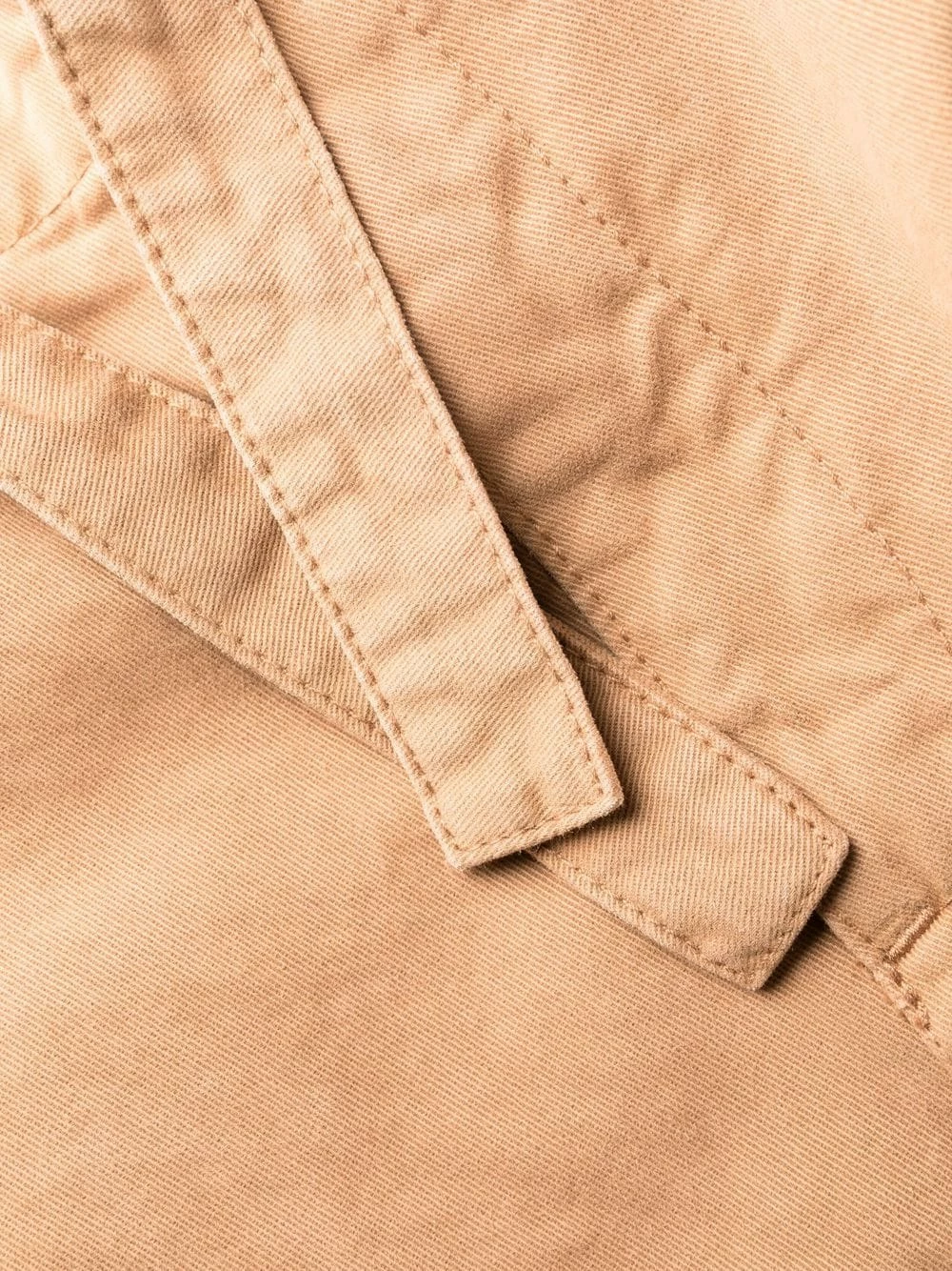 Coupe ample, fermeture dissimulée sur le devant, poches latérales fendues, coupe courte. Matière : coton.
