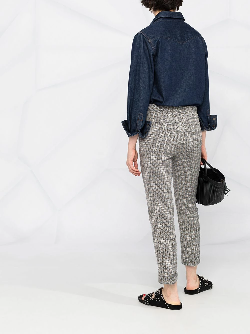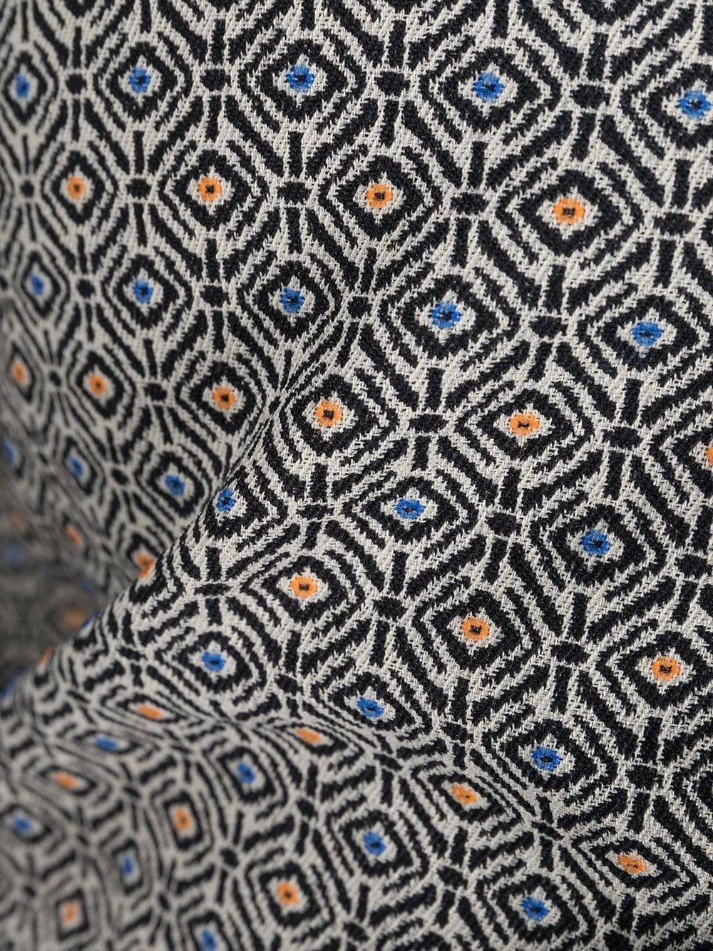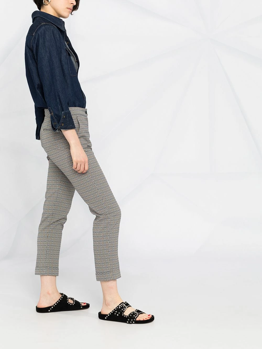 Imprimé à carreaux, longueur crop, poches latérales fendues, boutonnière sur le devant.