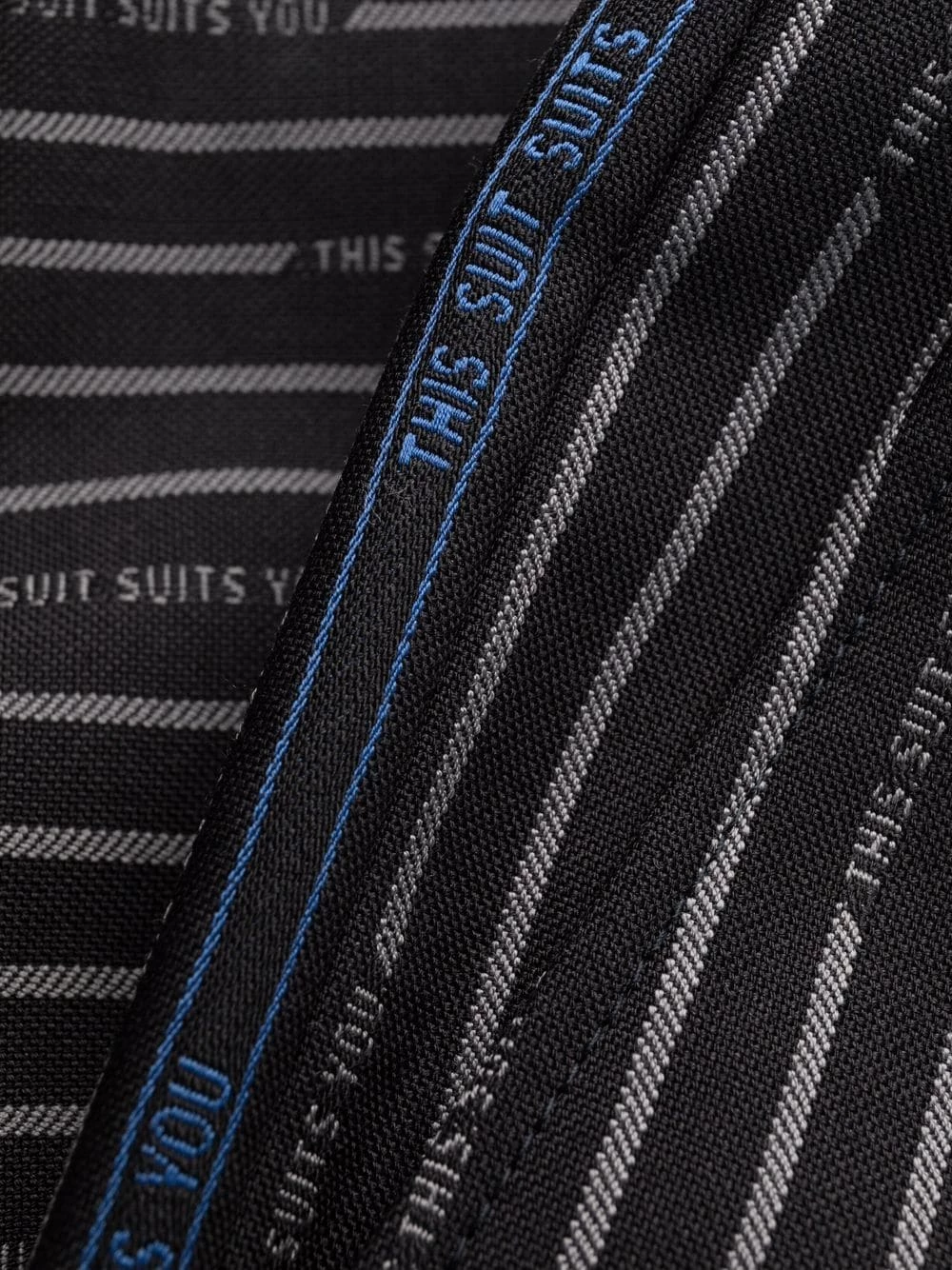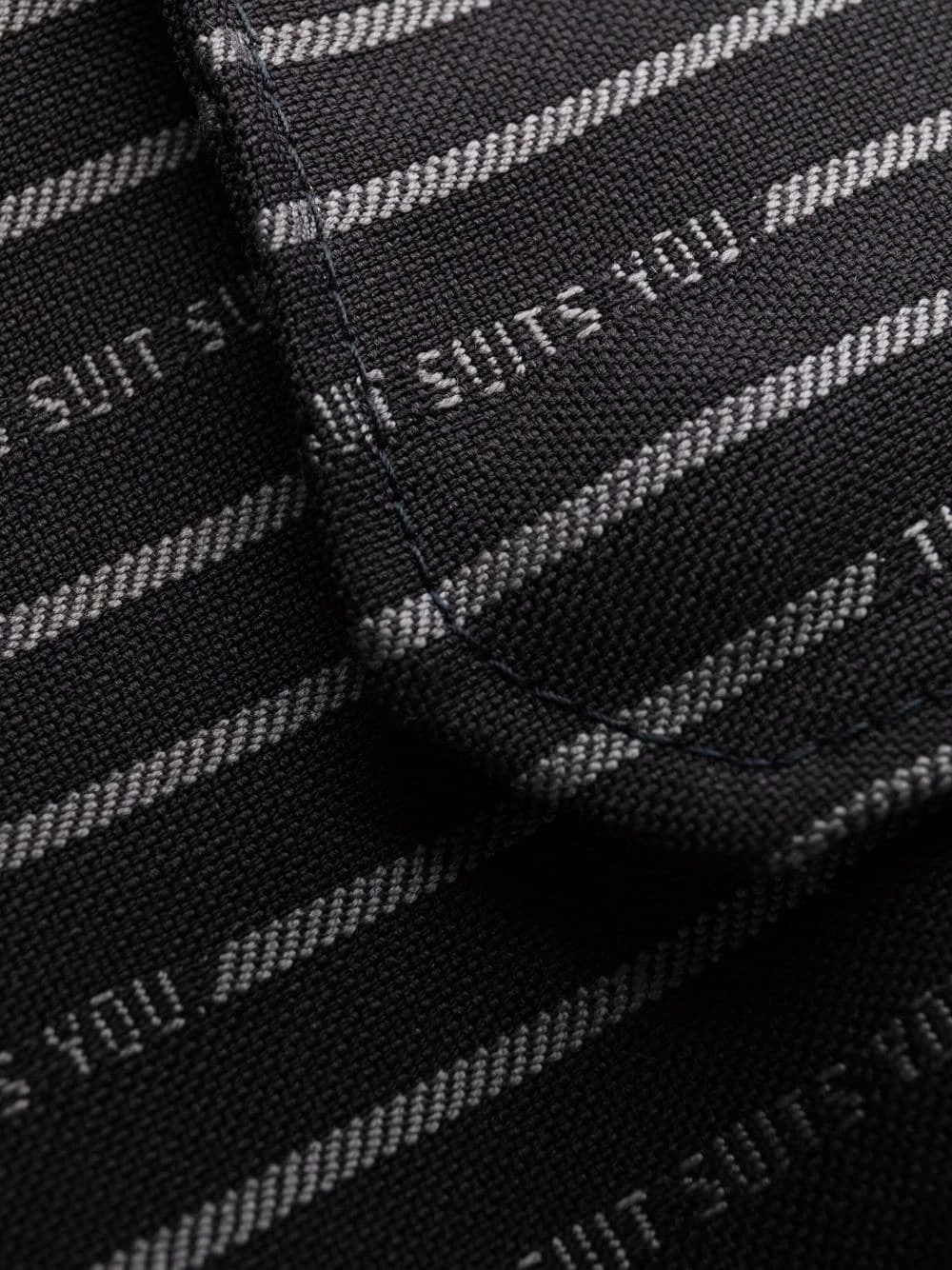 Rayures verticales imprimées, taille haute, passants de ceinture, poches arrière à rabat.