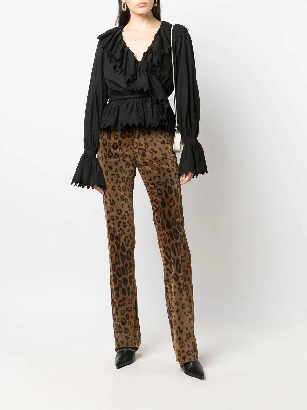 Imprimé animalier, passants de ceinture, fermeture dissimulée sur le devant, coupe évasée, deux poches latérales fendues, poche arrière passepoilée.