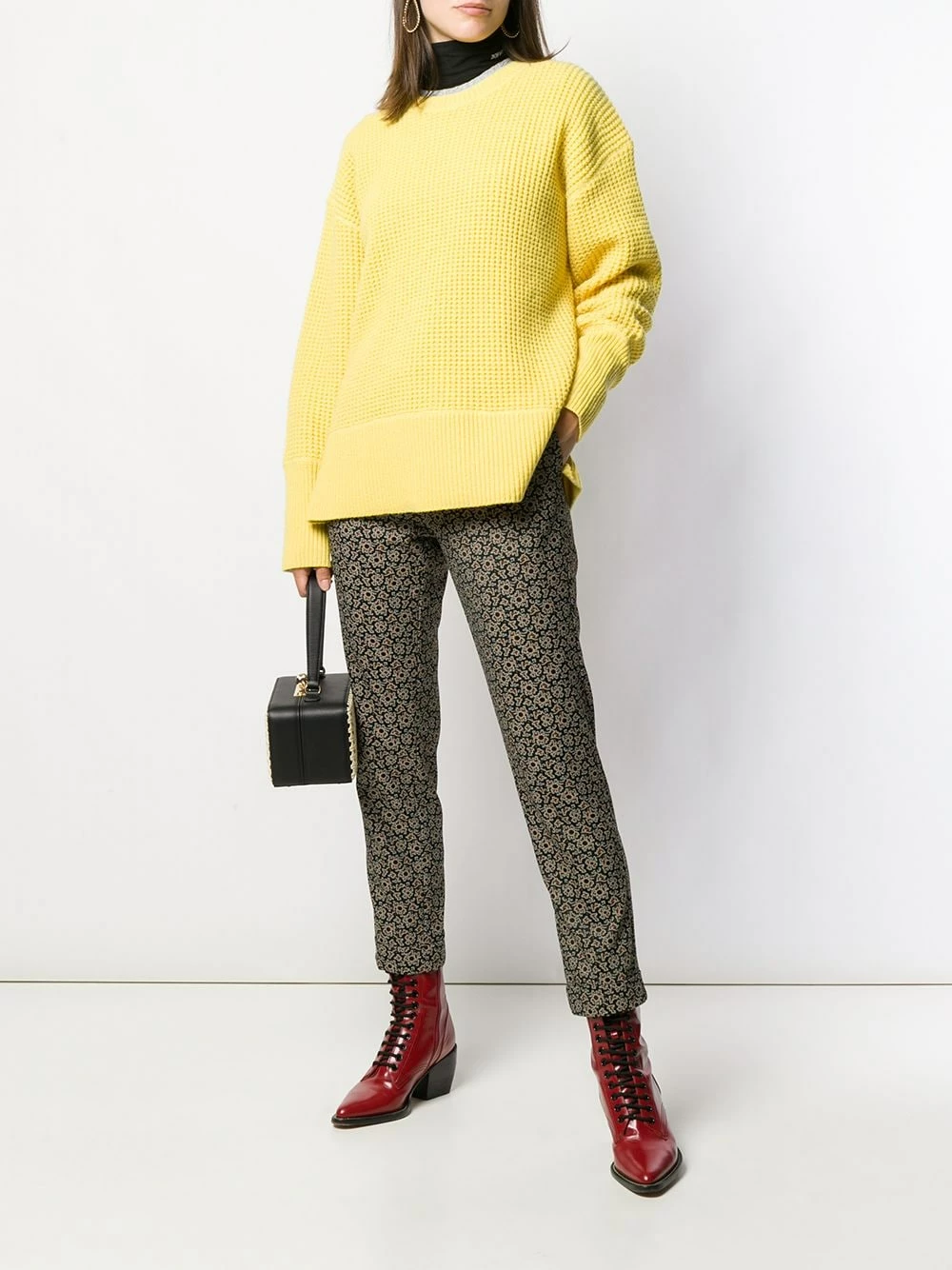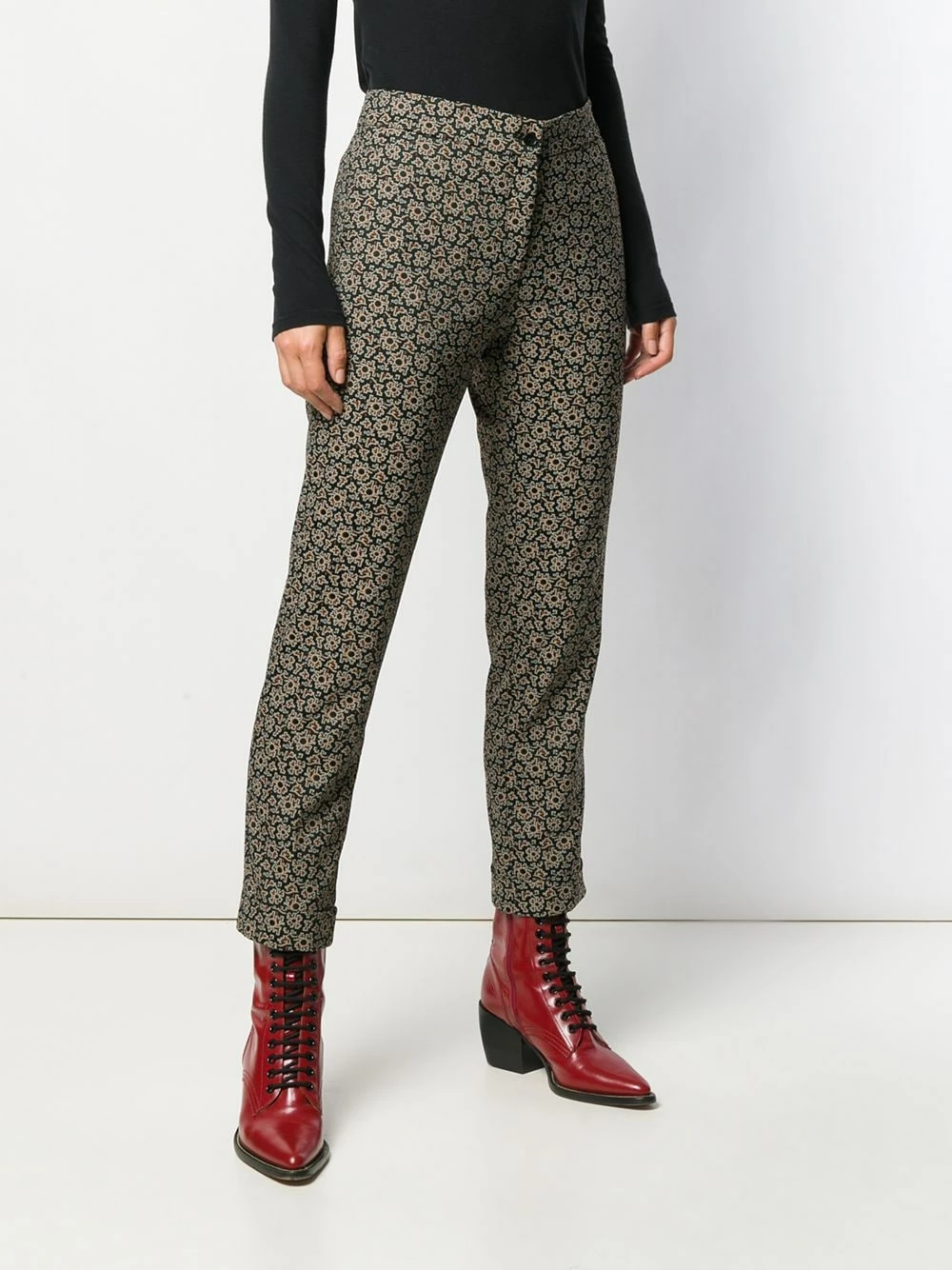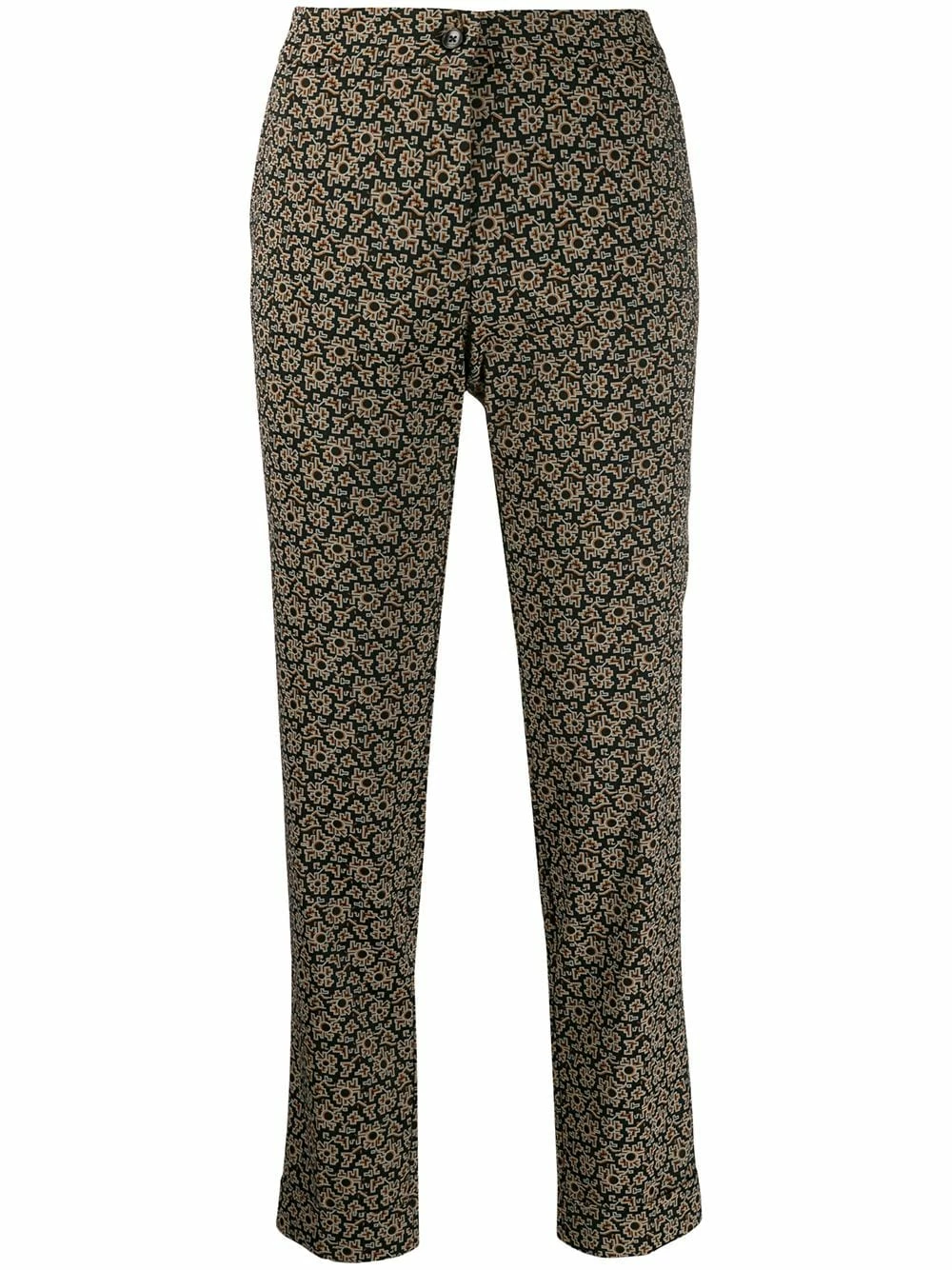 Pantalon Kaleidoscope Etro avec boutonnière sur le devant, taille haute et motif abstrait. Couleur : noir.