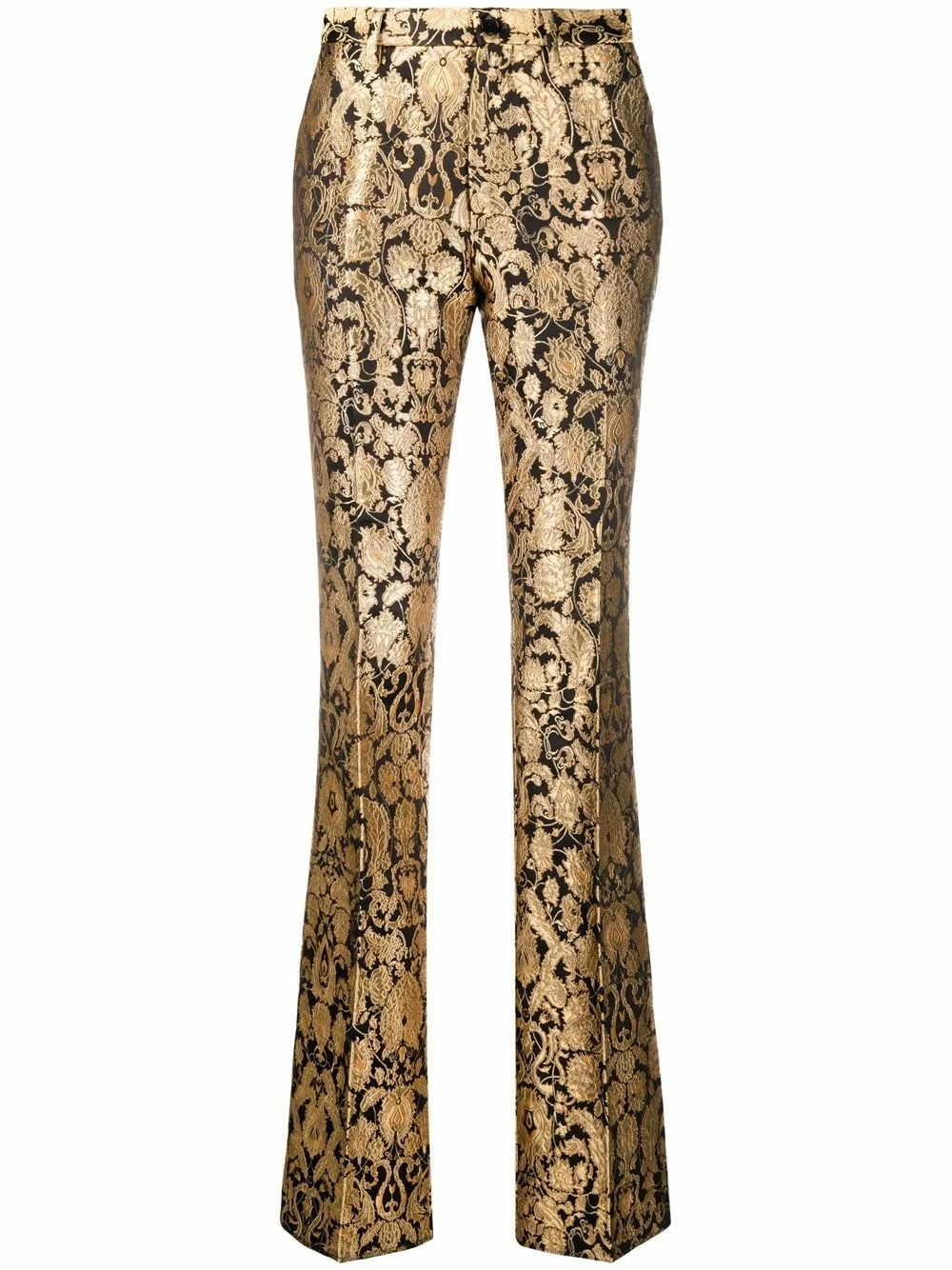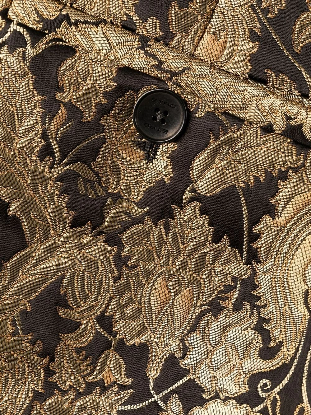 Fermeture à zip et boutons sur le devant, deux poches latérales fendues, effet métallisé, jacquard à motifs, coupe évasée. Couleur : noir.