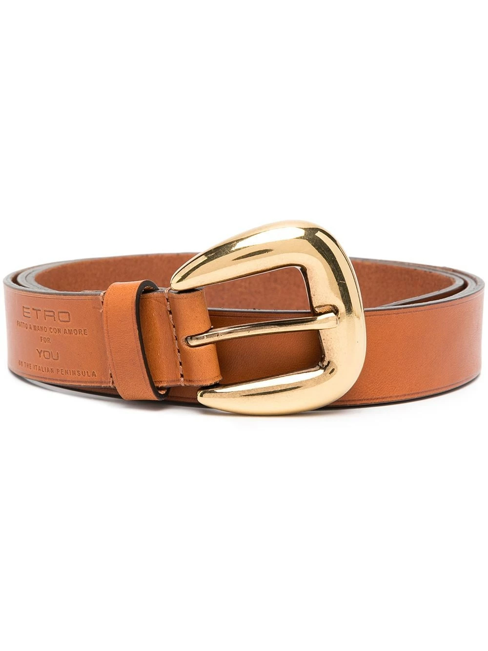 Logo embossé, finitions en métal doré, fermeture à boucle, bout pointu. Couleur : marron. Matière : cuir de veau.