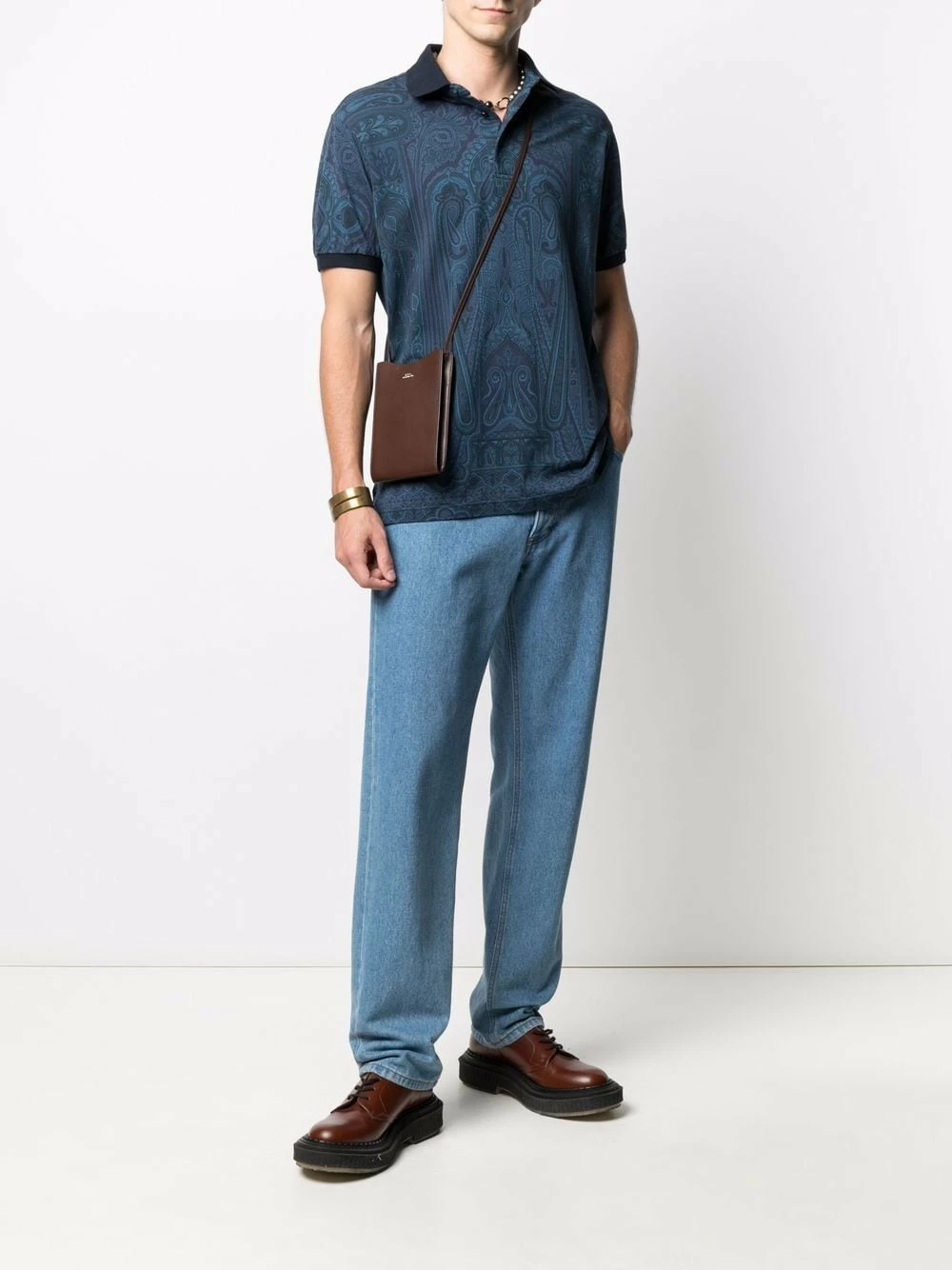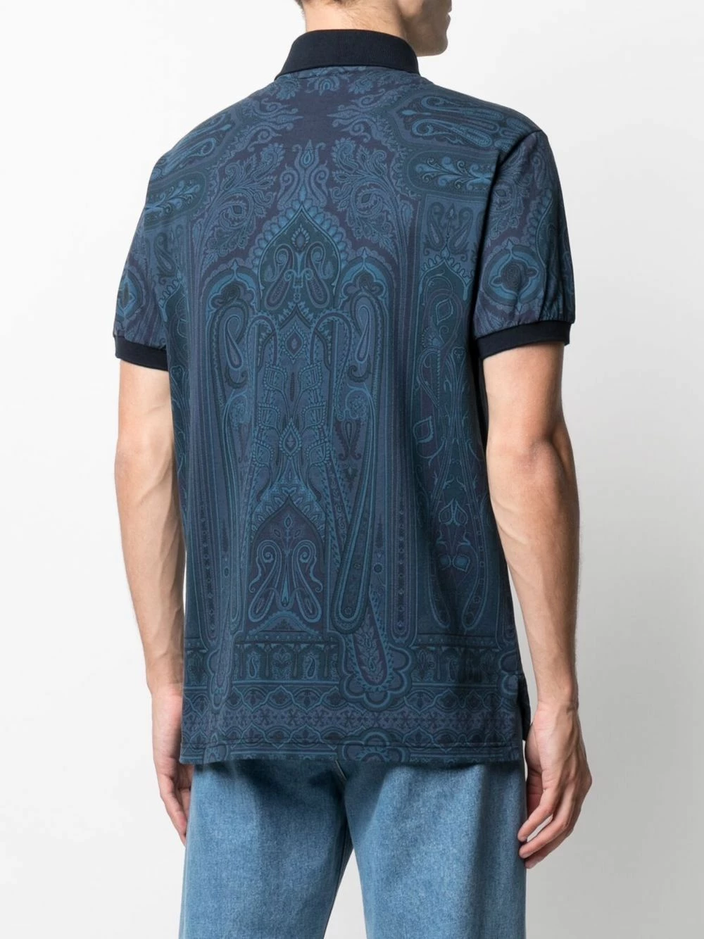 Motif cachemire, col polo, patte de boutonnage sur le devant, manches courtes. Matière : coton.