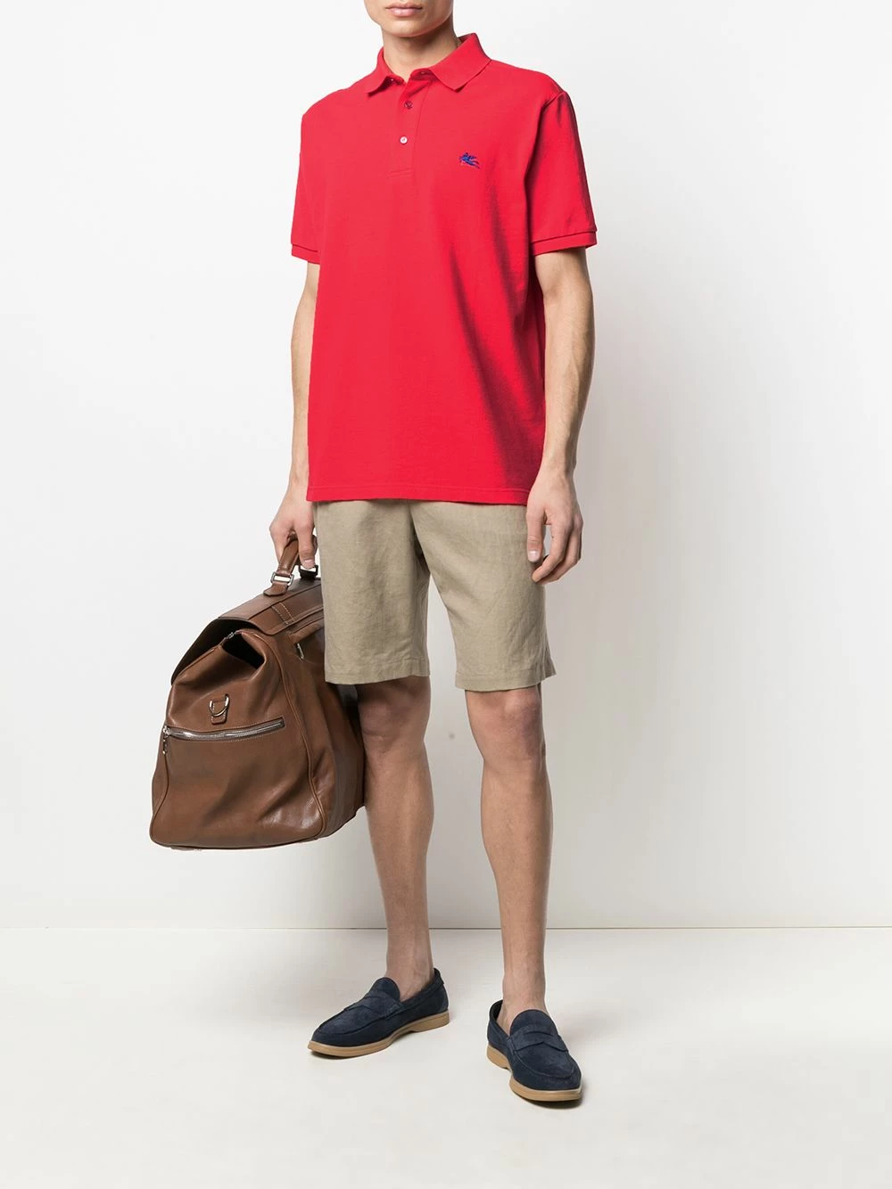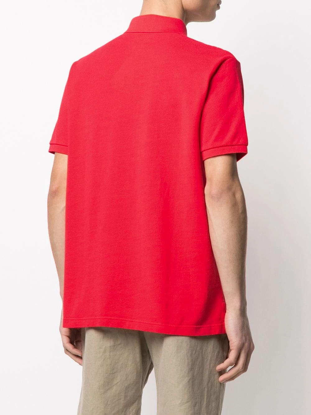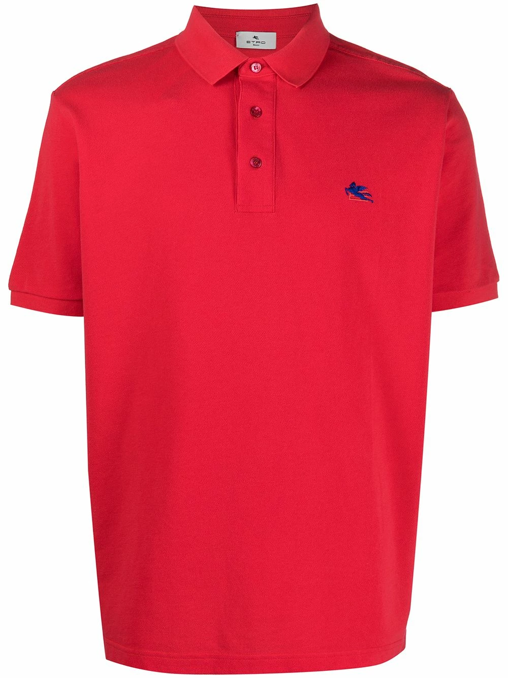 Tricot point jersey, logo brodé, col polo, patte de boutonnage sur le devant, manches courtes. Matière : coton.