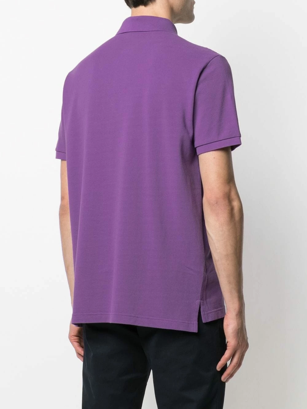 Logo brodé, manches courtes, col boutonné, ourlet droit. Couleur : violet. Matière : coton.