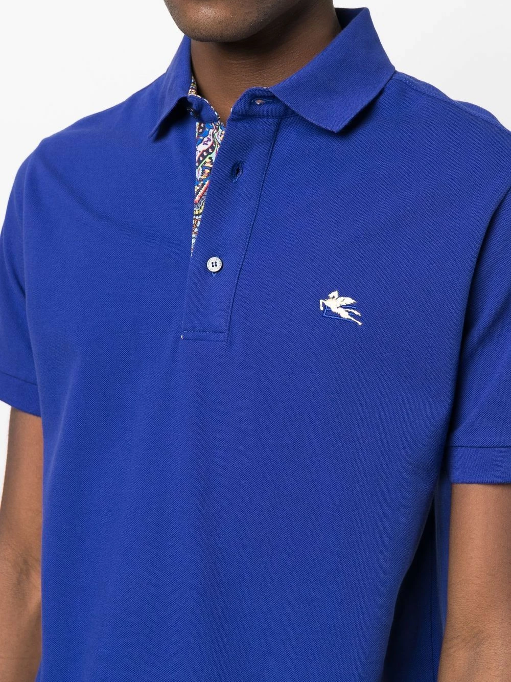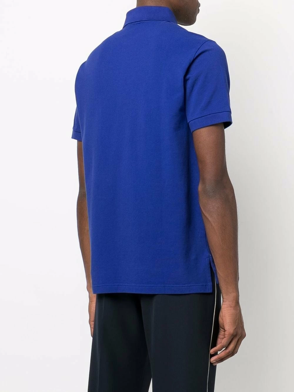 Tricot point jersey, logo brodé sur le devant, col polo, patte de boutonnage sur le devant, manches courtes, ourlet droit.