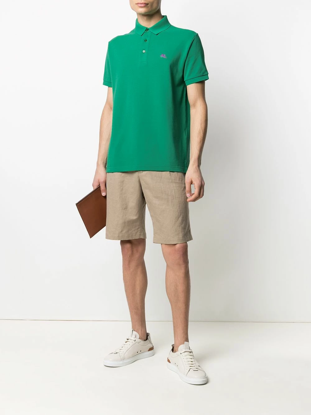 Col polo, patte de boutonnage sur le devant, logo brodée sur la poitrine, manches courtes, ourlet droit. Couleur : vert.