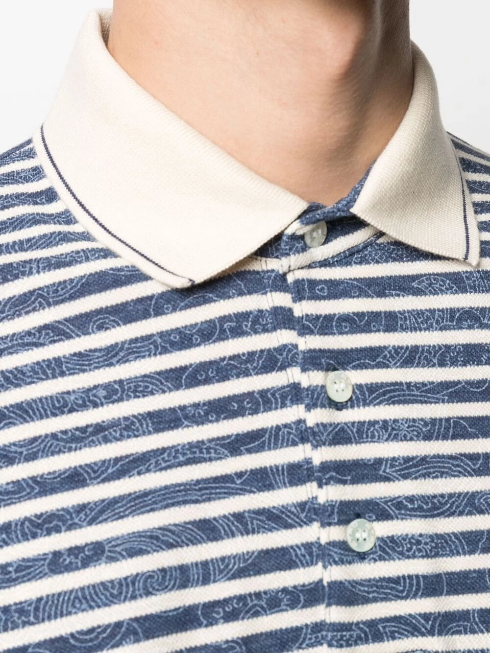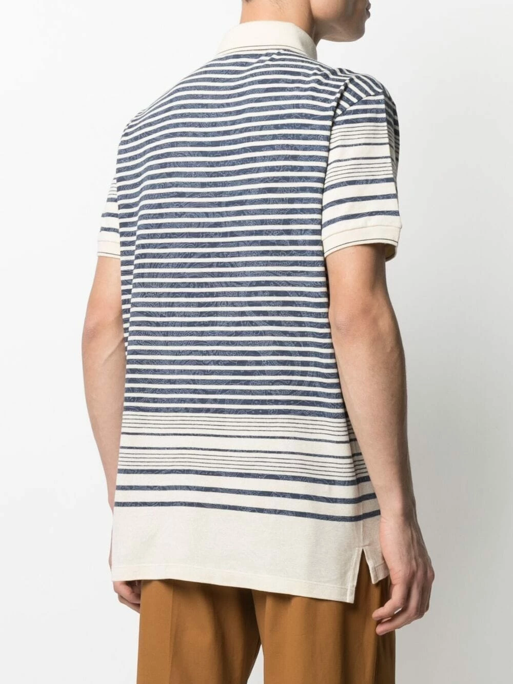 Détails rayés, col polo, manches courtes, ourlet droit. Matière : coton.