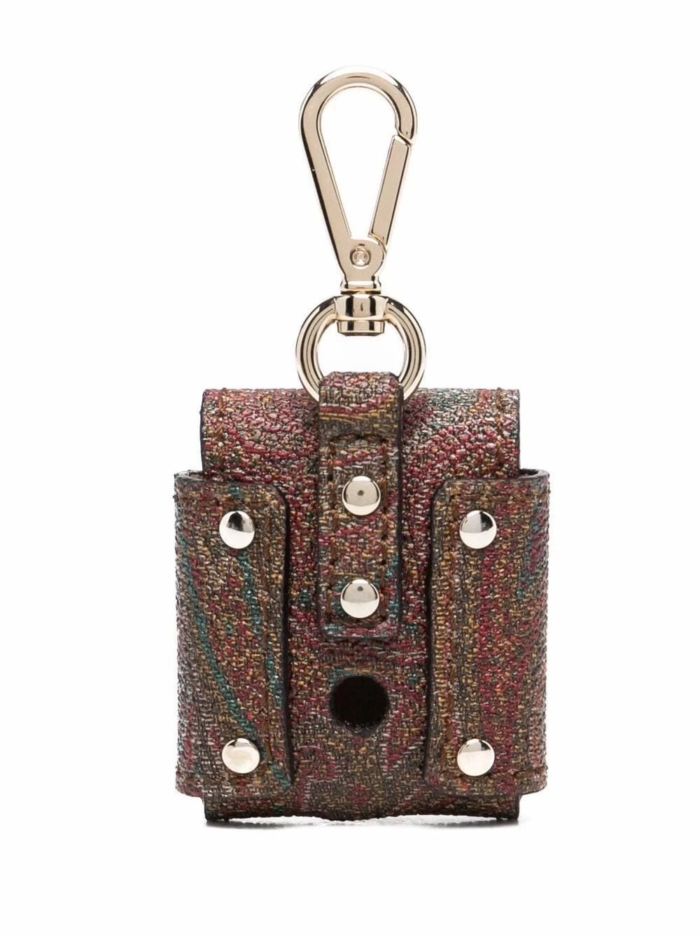 Finitions en métal doré, motif cachemire, fermoir mousqueton, dessus à rabat avec bouton pression. Couleur : marron. Matière : coton.