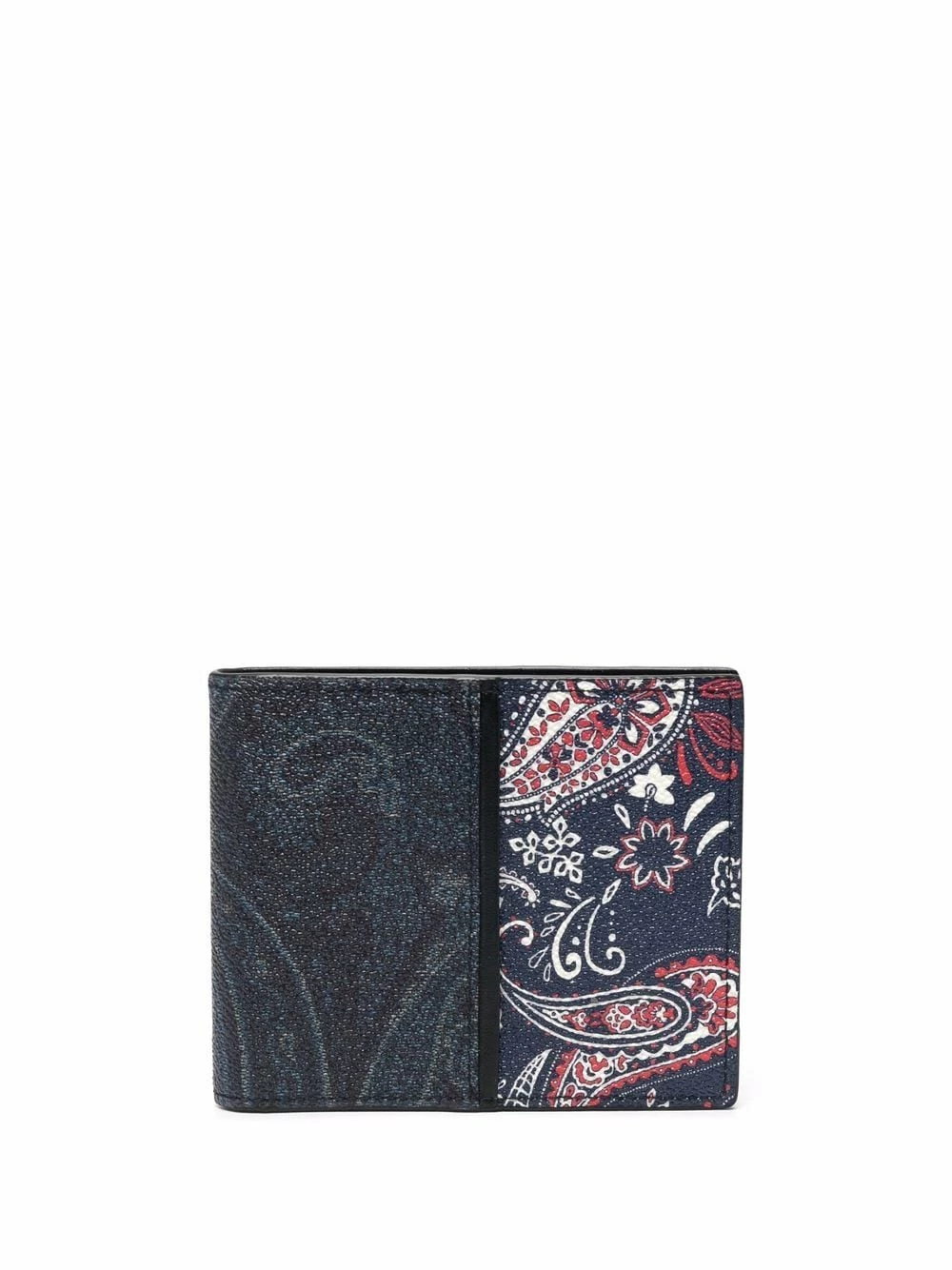 Motif cachemire, compartiments intérieurs pour carte, compartiment à billets intérieur. Matière : cuir.