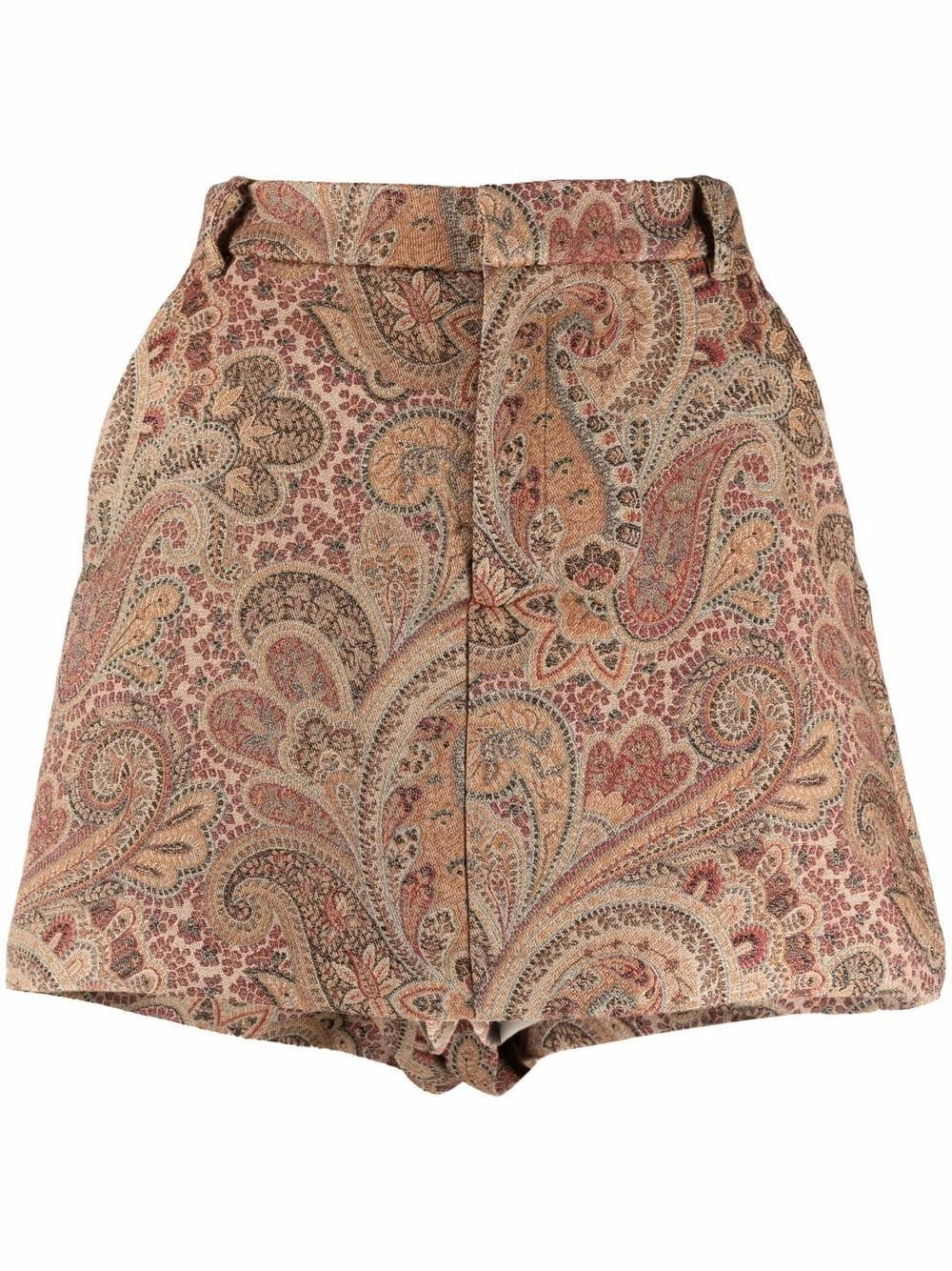 Motif cachemire, passants de ceinture, fermeture dissimulée sur le devant, poches arrière passepoilées. Couleur : marron.