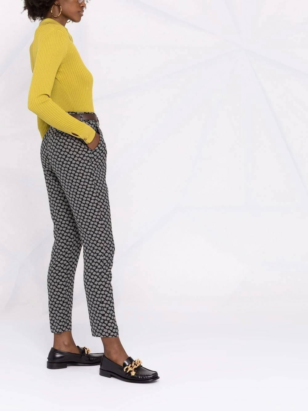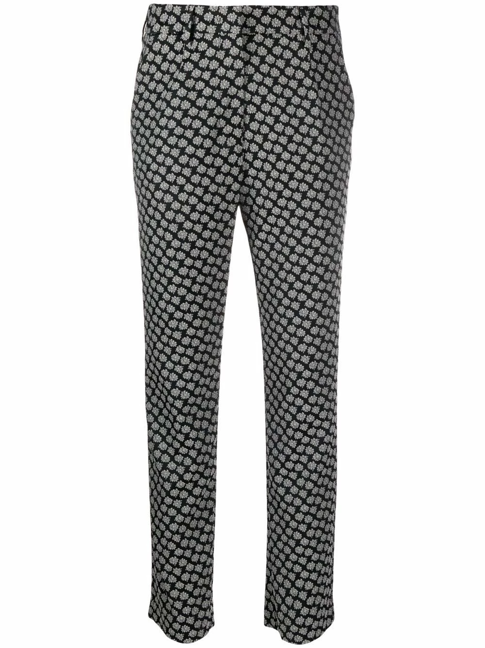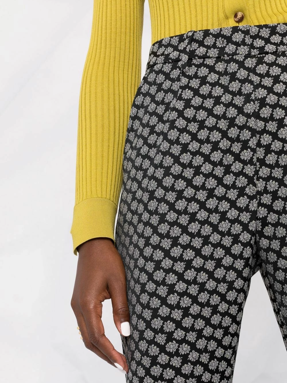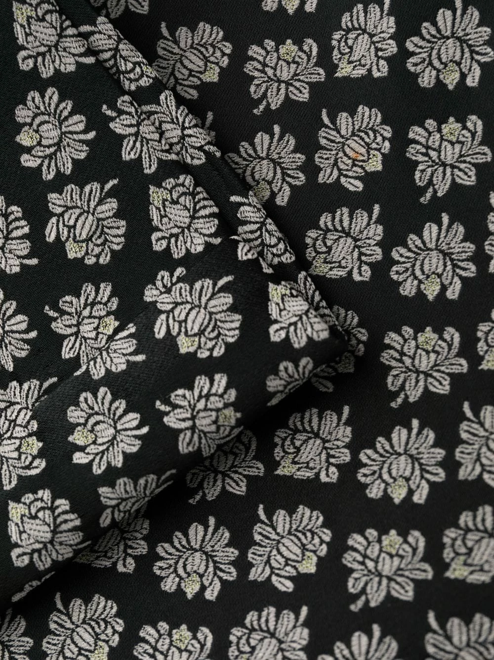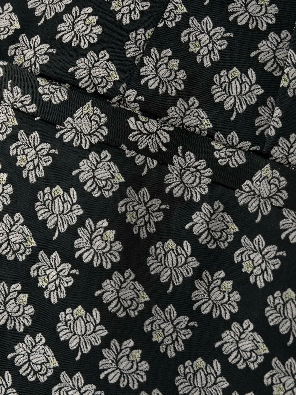 Fermeture à zip et boutons sur le devant, passants de ceinture, imprimé à fleurs, coupe droite, deux poches latérales fendues. Couleur : noir.