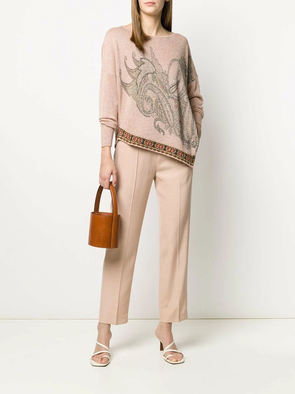 Pantalon droit à taille élastique Etro avec ceinture élastique, a pull-on style et coupe droite.