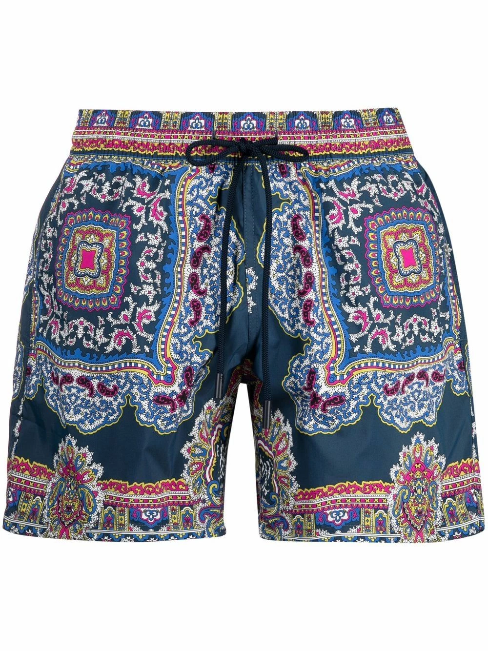 Motif cachemire, taille élastique à lien de resserrage, patch logo sur l’arrière. Veillez à essayer les maillot de bain par-dessus vos propres sous-vêtements.