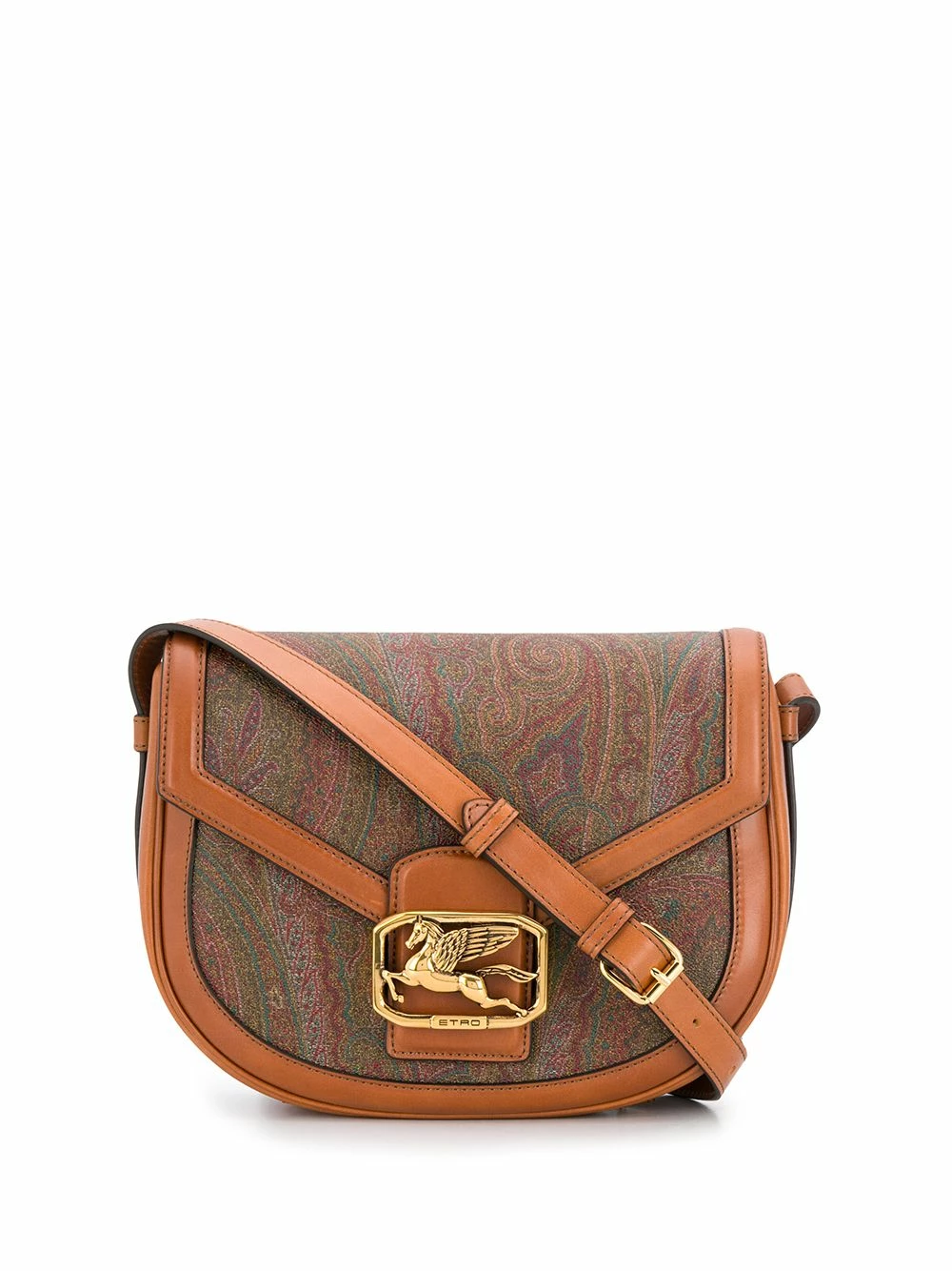 Sac à bandoulière Pegaso en coton mélangé Etro avec bride portée épaule détachable, détails dorés, poche arrière, dessus replié, compartiment intérieur, patch logo intérieur et poche intérieure zippée.