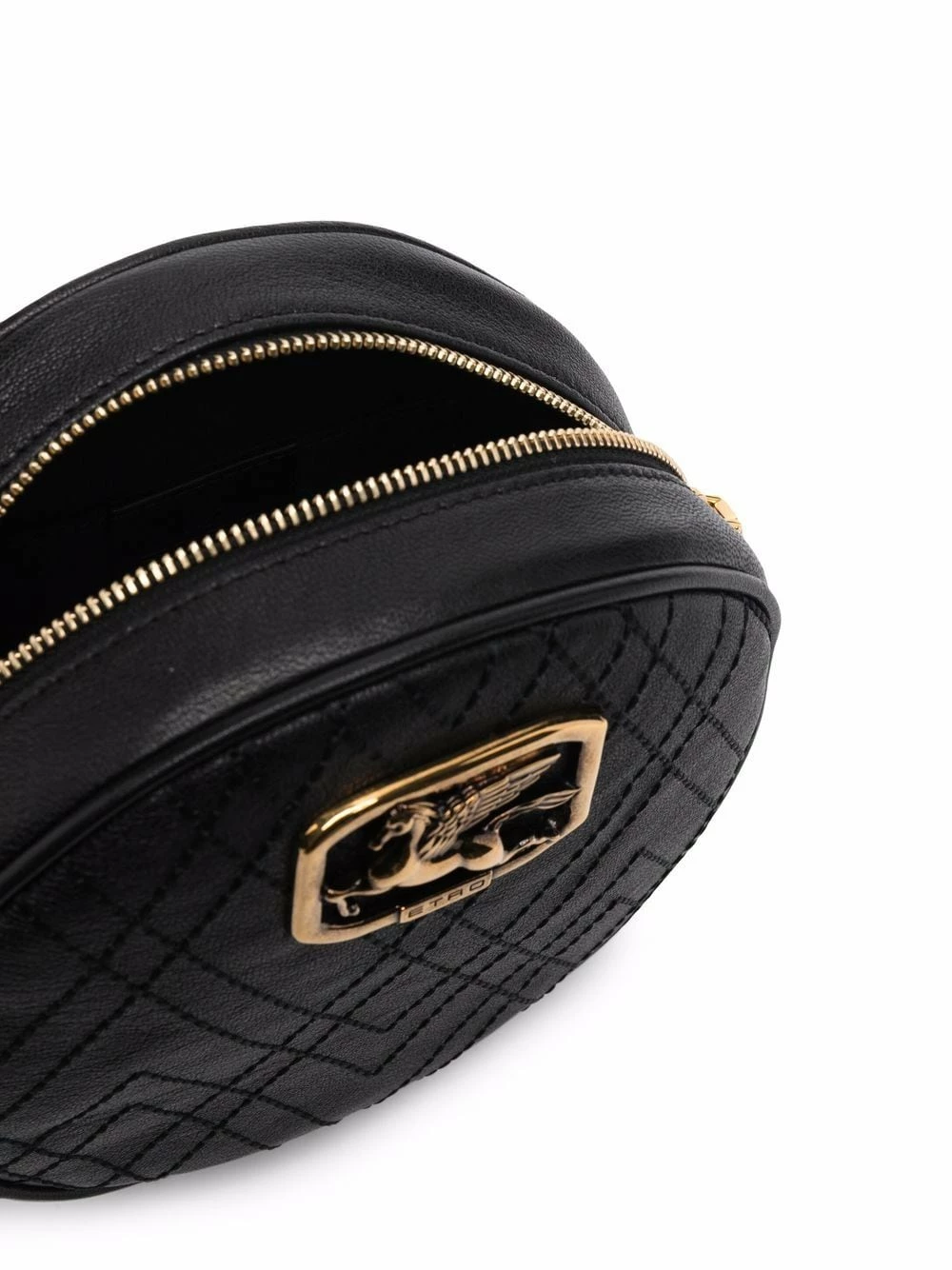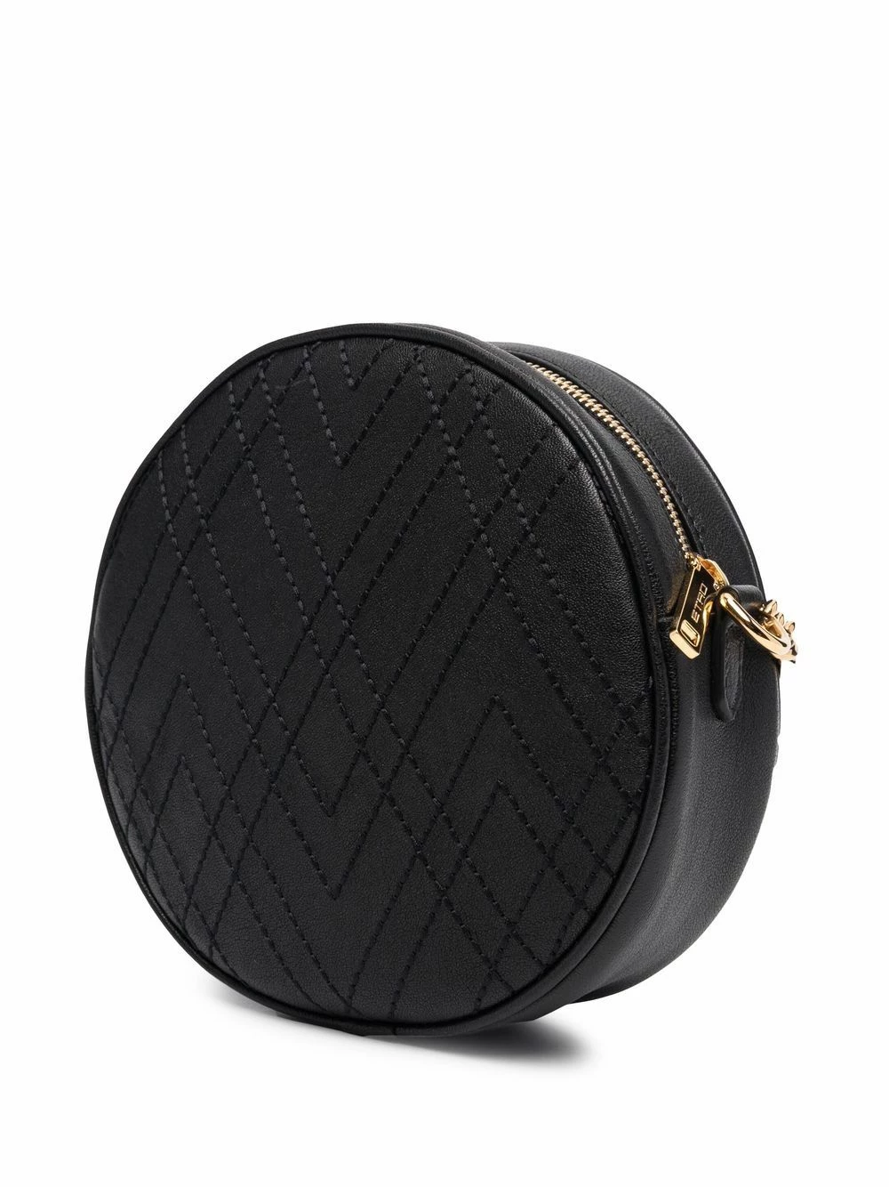 Bride porté épaule en cuir et maillons de chaîne, fermeture zippée sur le dessus, design matelassé, plaque logo dorée. Couleur : noir. Matière : cuir.