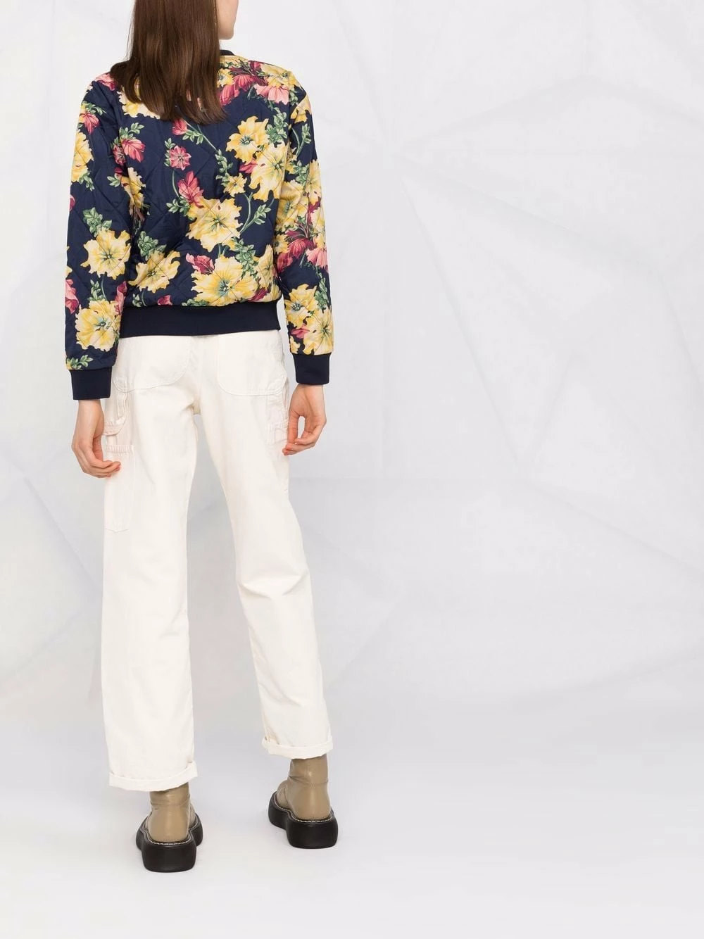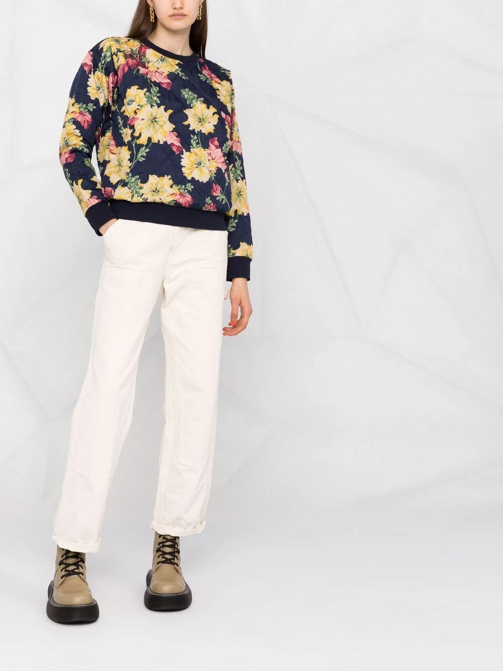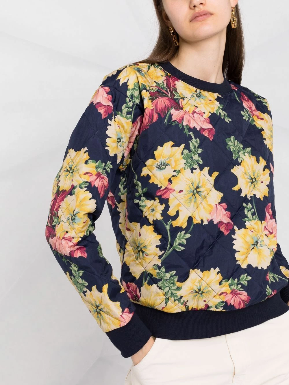 Design matelassé, motif de fleurs, encolure ras du cou, manches longues, poignets élastiqués, ourlet élastiqué.