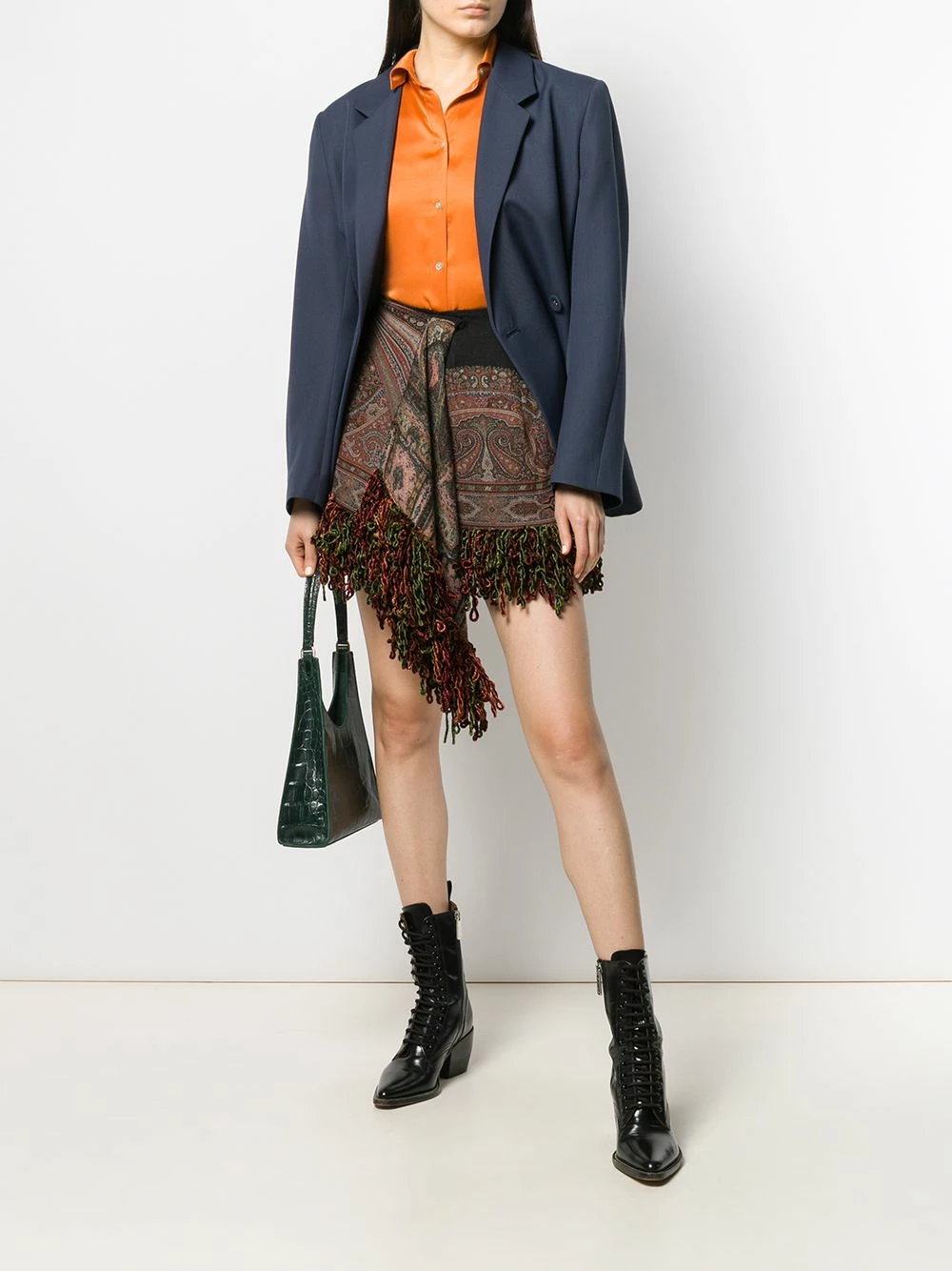 Minijupe à design drapé Etro avec pompons, design portefeuille et ourlet asymétrique. Couleur : marron.