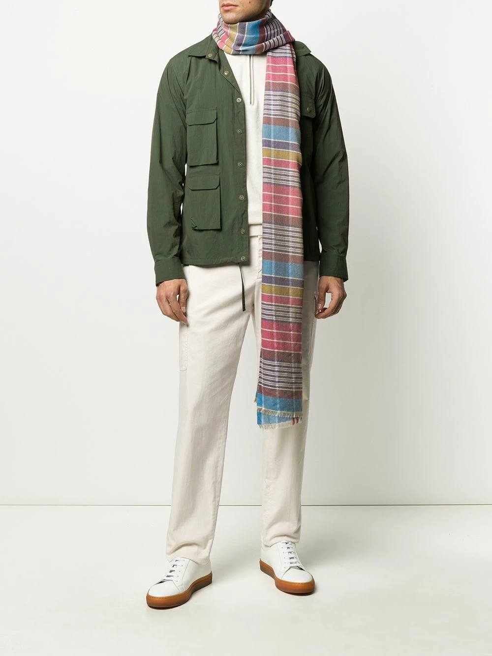 Écharpe Selvedged Etro avec forme rectangulaire, bords frangés et coupe longue.