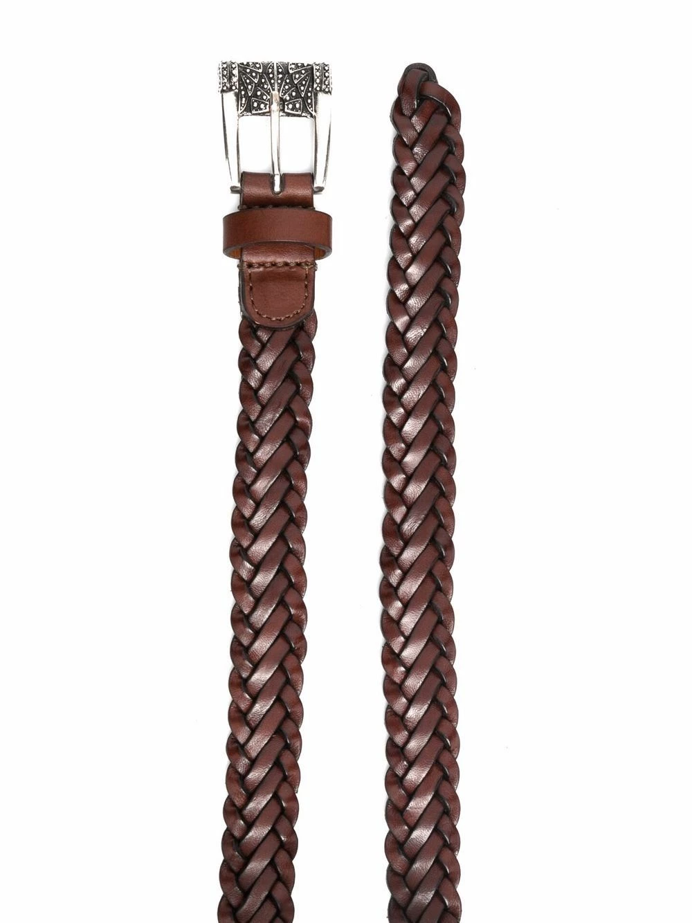 Finitions tressées, finitions gravées, fermeture à boucle argentée, taille ajustable. Matière : cuir de veau.