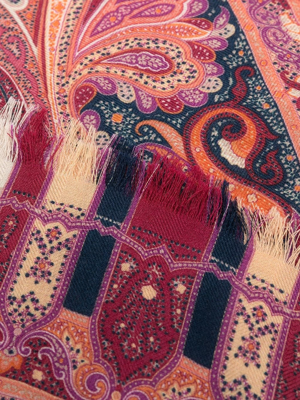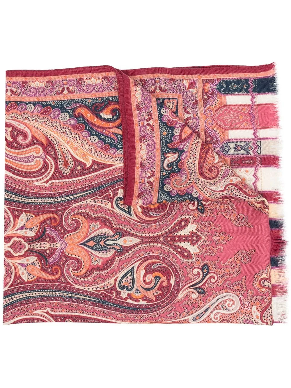Motif cachemire, design portefeuille, maille fine, bords francs.
