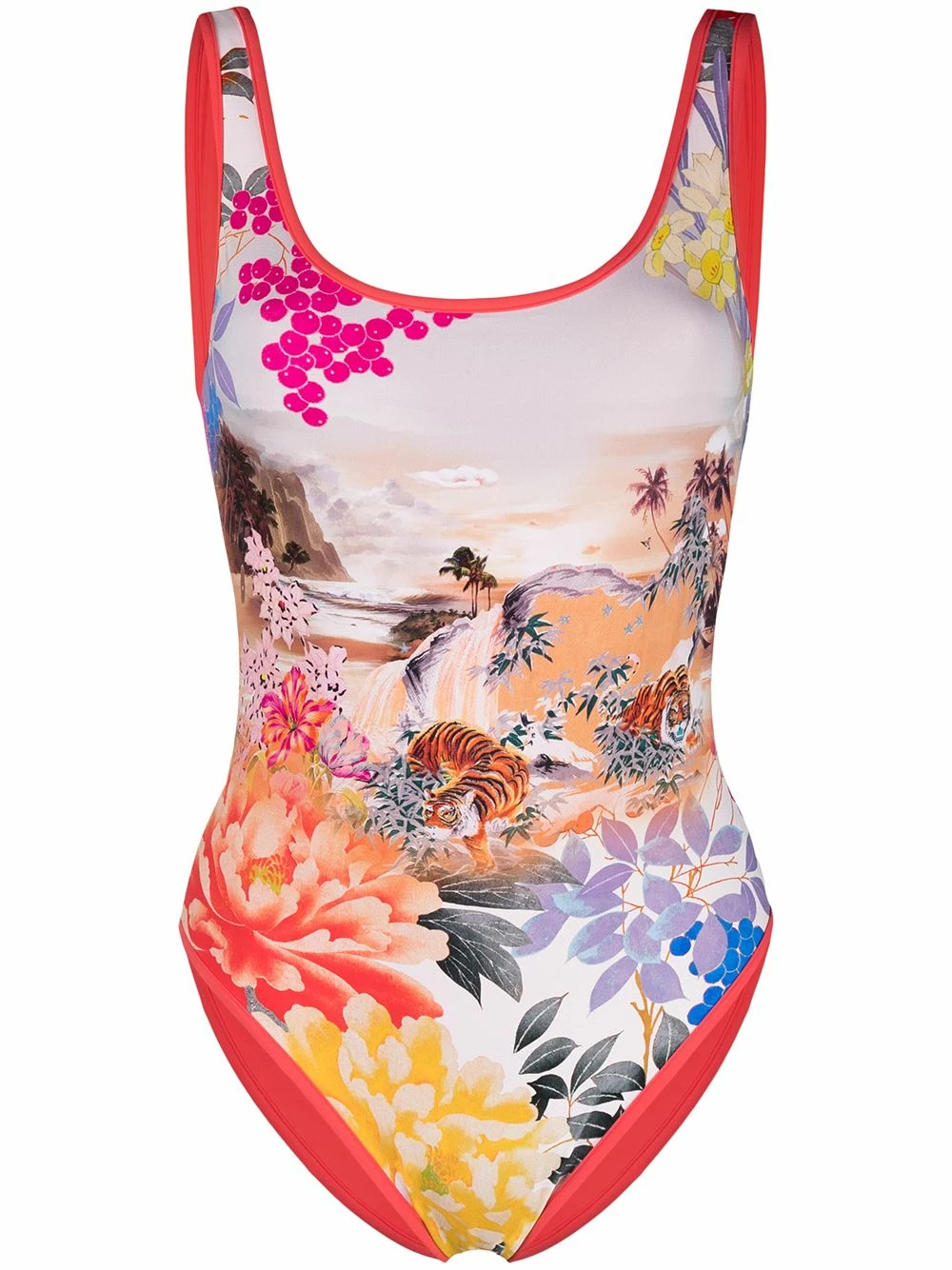 Décolleté arrondi dans le dos, encolure ronde, design sans manches, bordure contrastante. Couleur : multicolore. Veillez à essayer les maillot de bain par-dessus vos propres sous-vêtements.