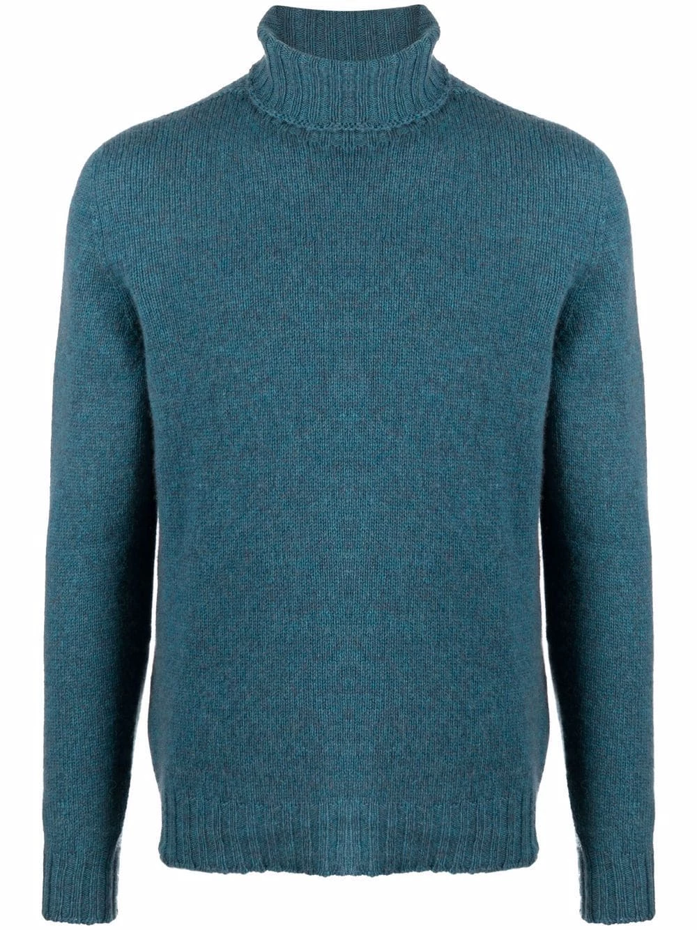 Bord en maille côtelée, col roulé, manches longues, ourlet droit. Matière : cachemire.