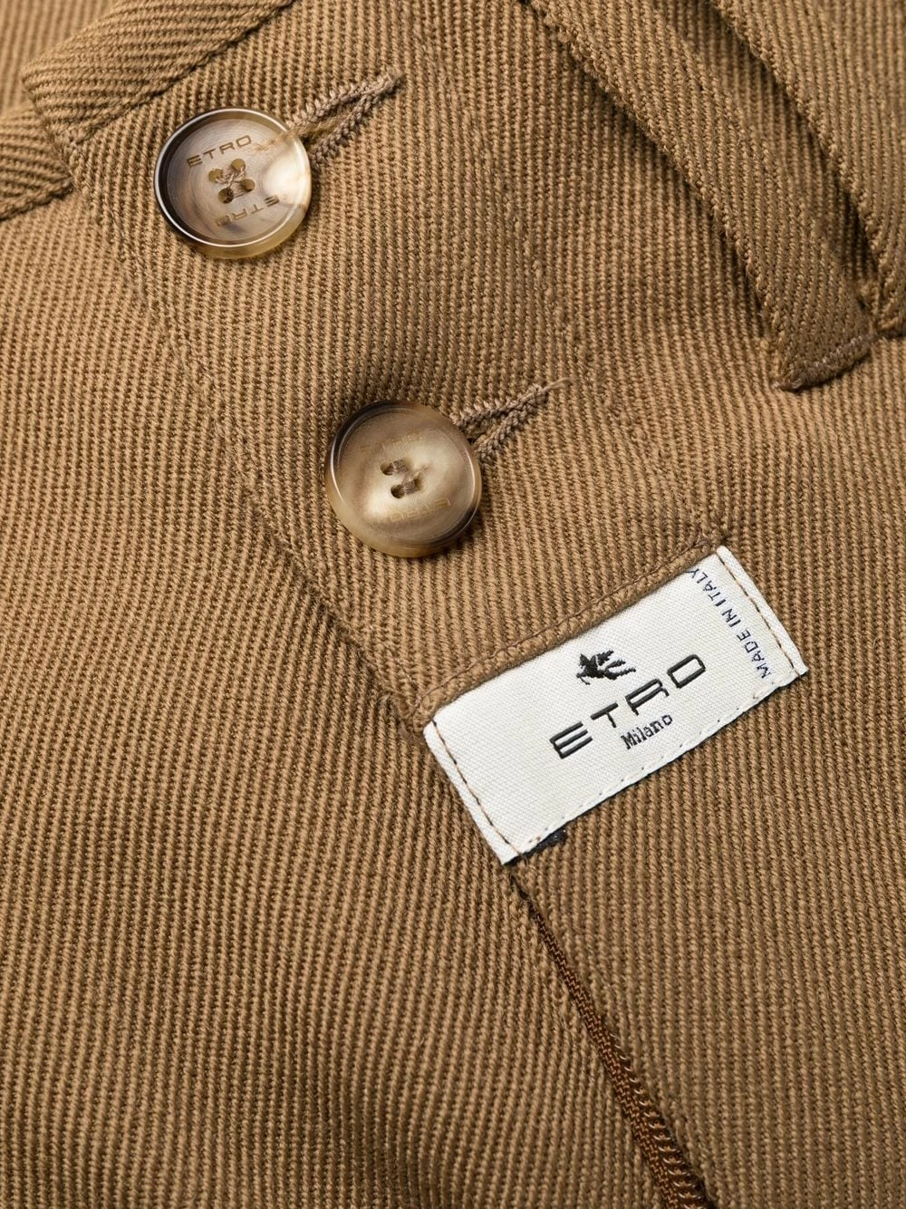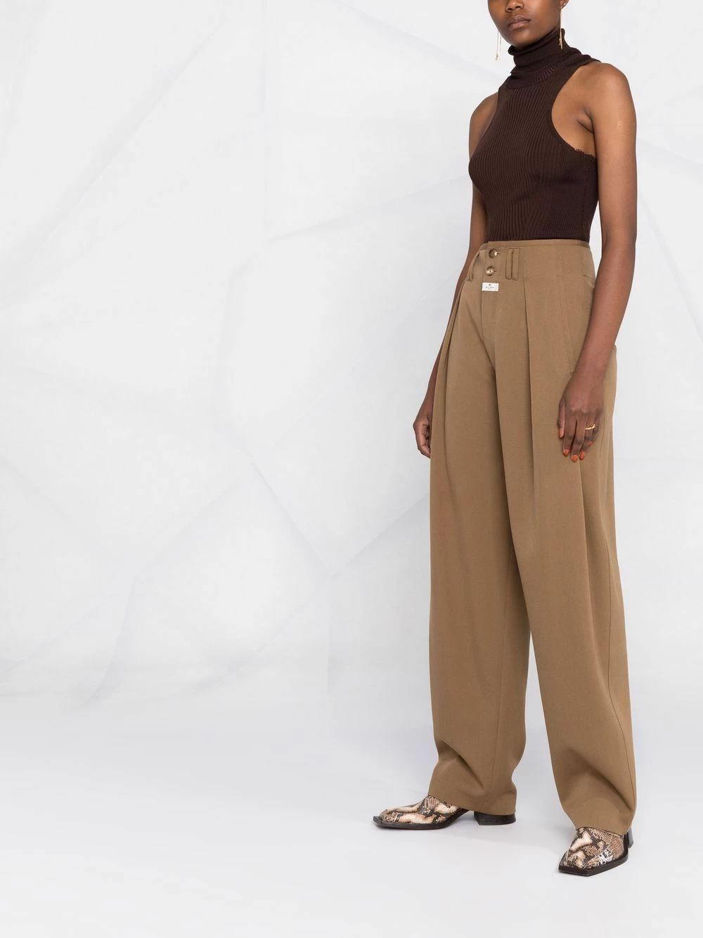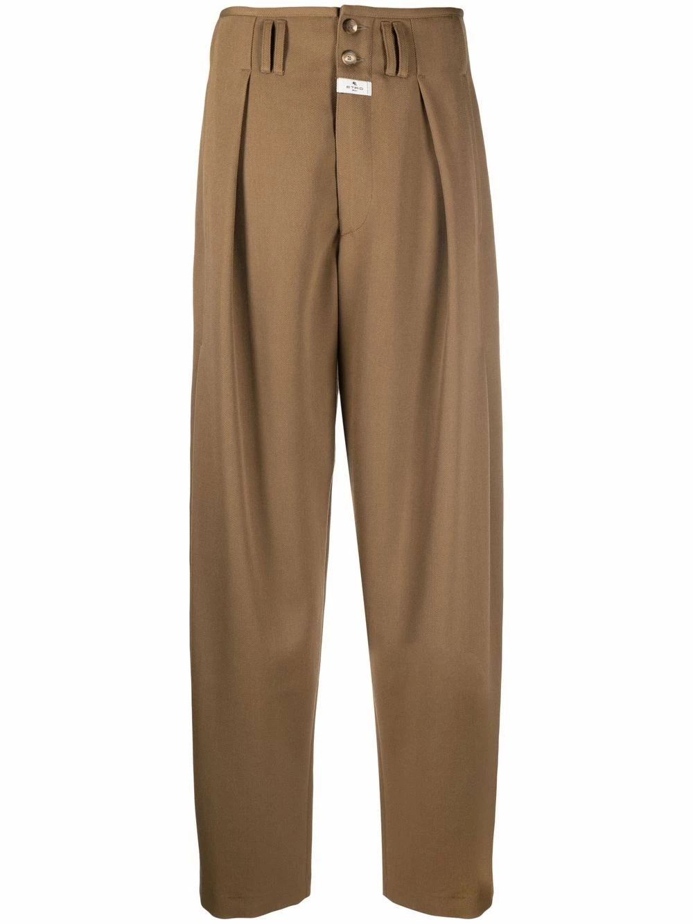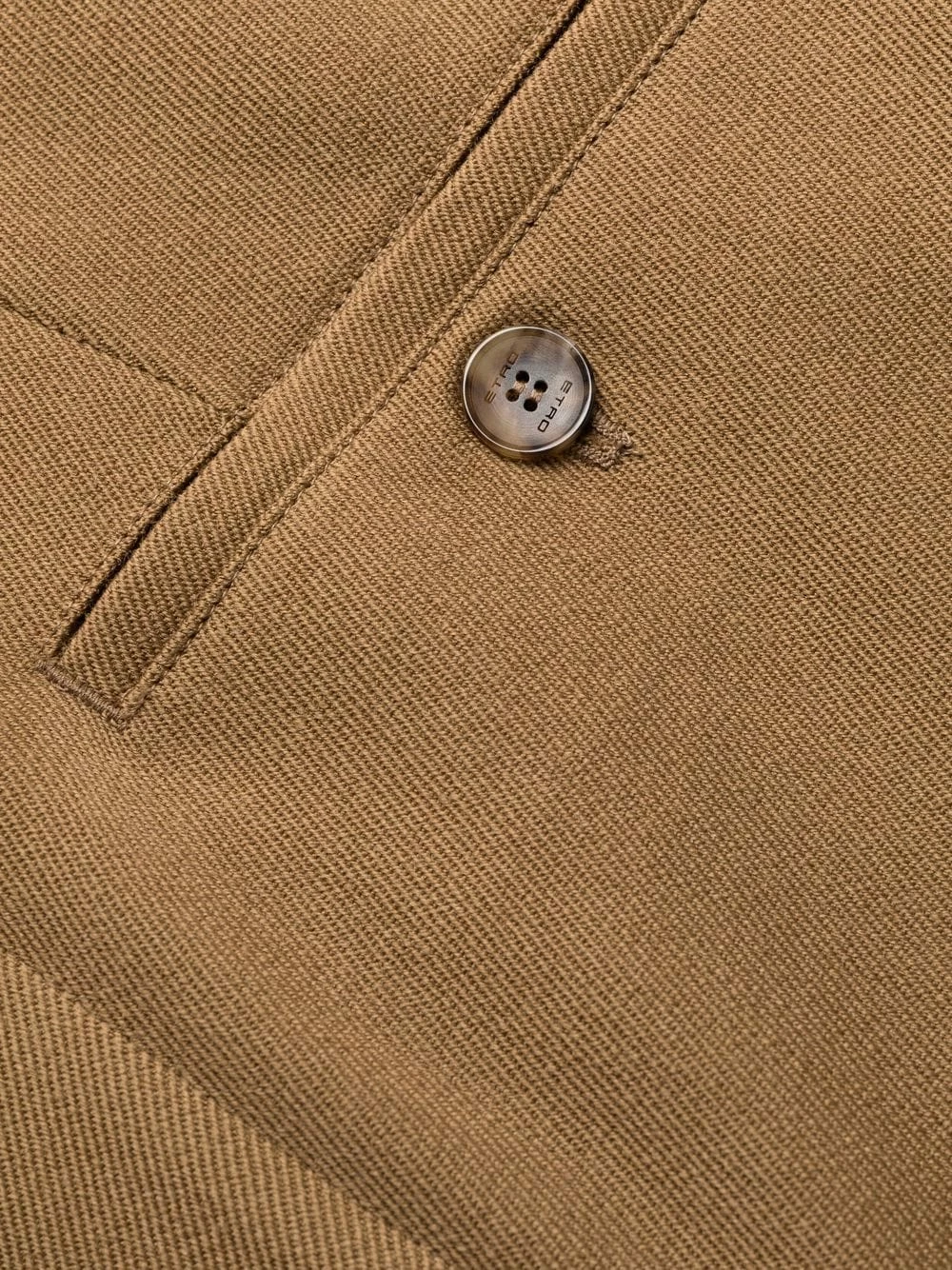 Patch logo sur le devant, coupe classique, taille haute, boutonnière sur le devant, passants de ceinture. Matière : laine.