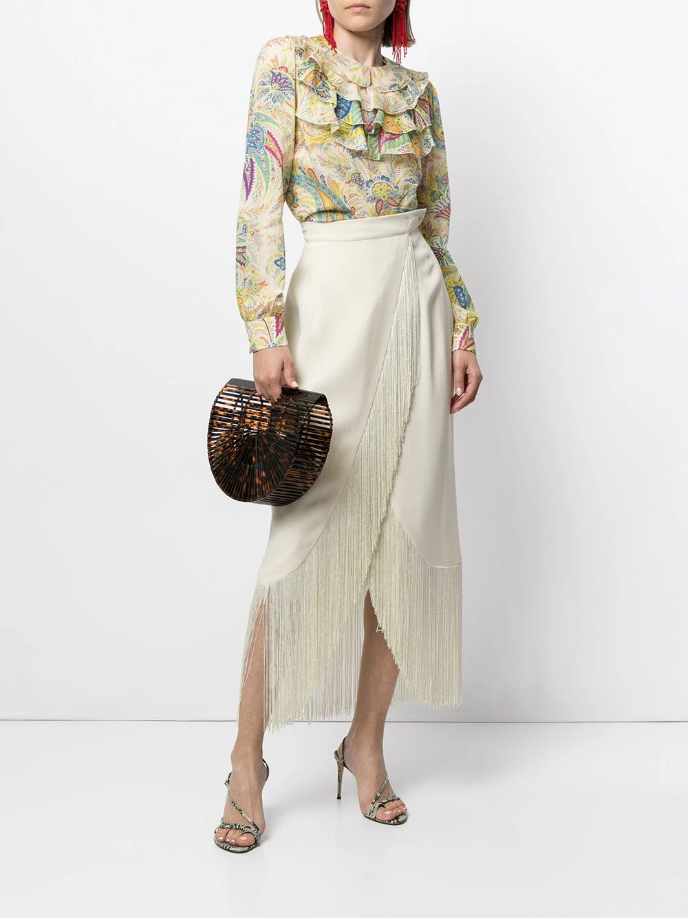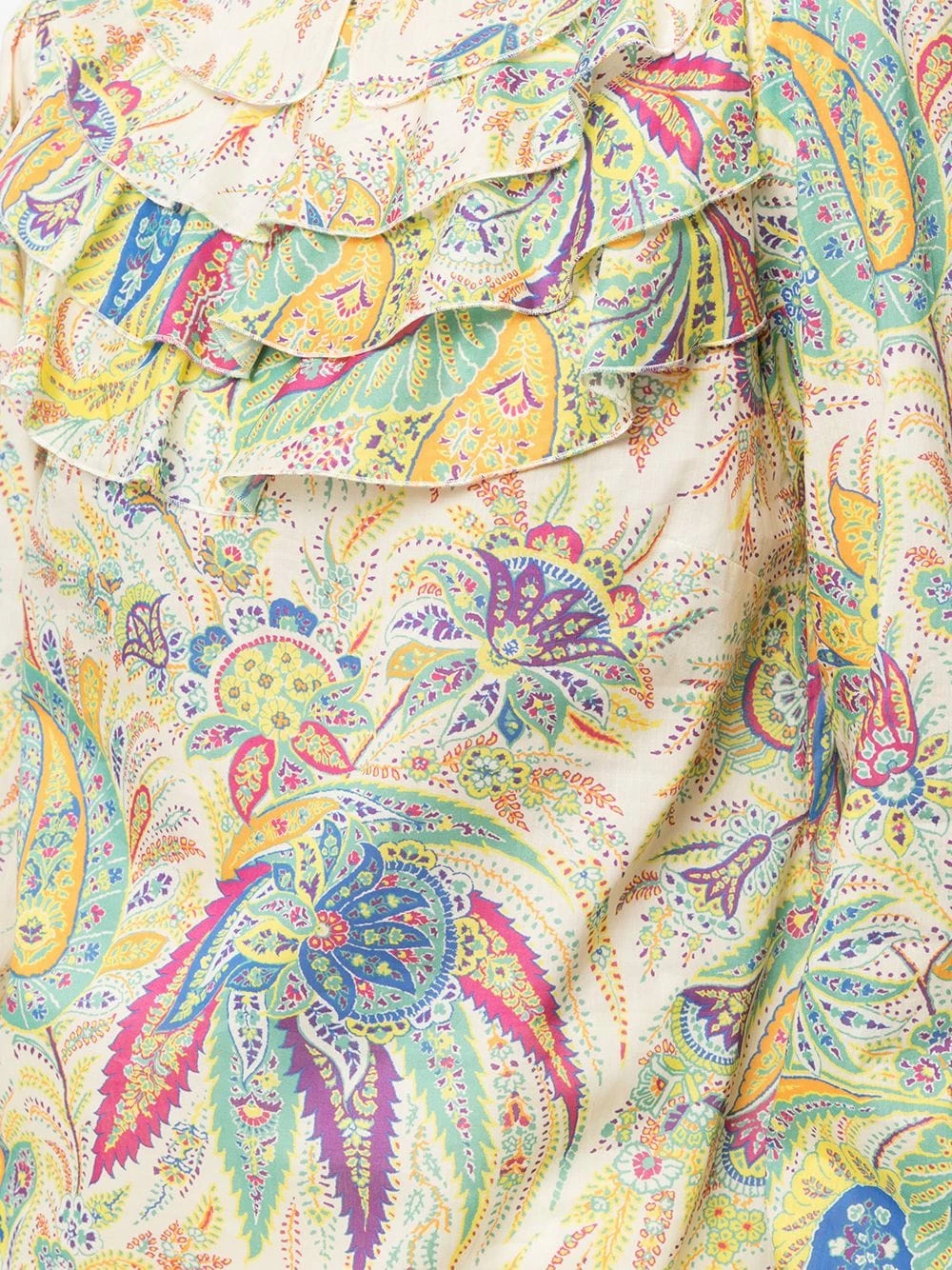 Motif cachemire, col volanté, ouverture goutte d’eau au dos, manches longues. Couleur : multicolore.