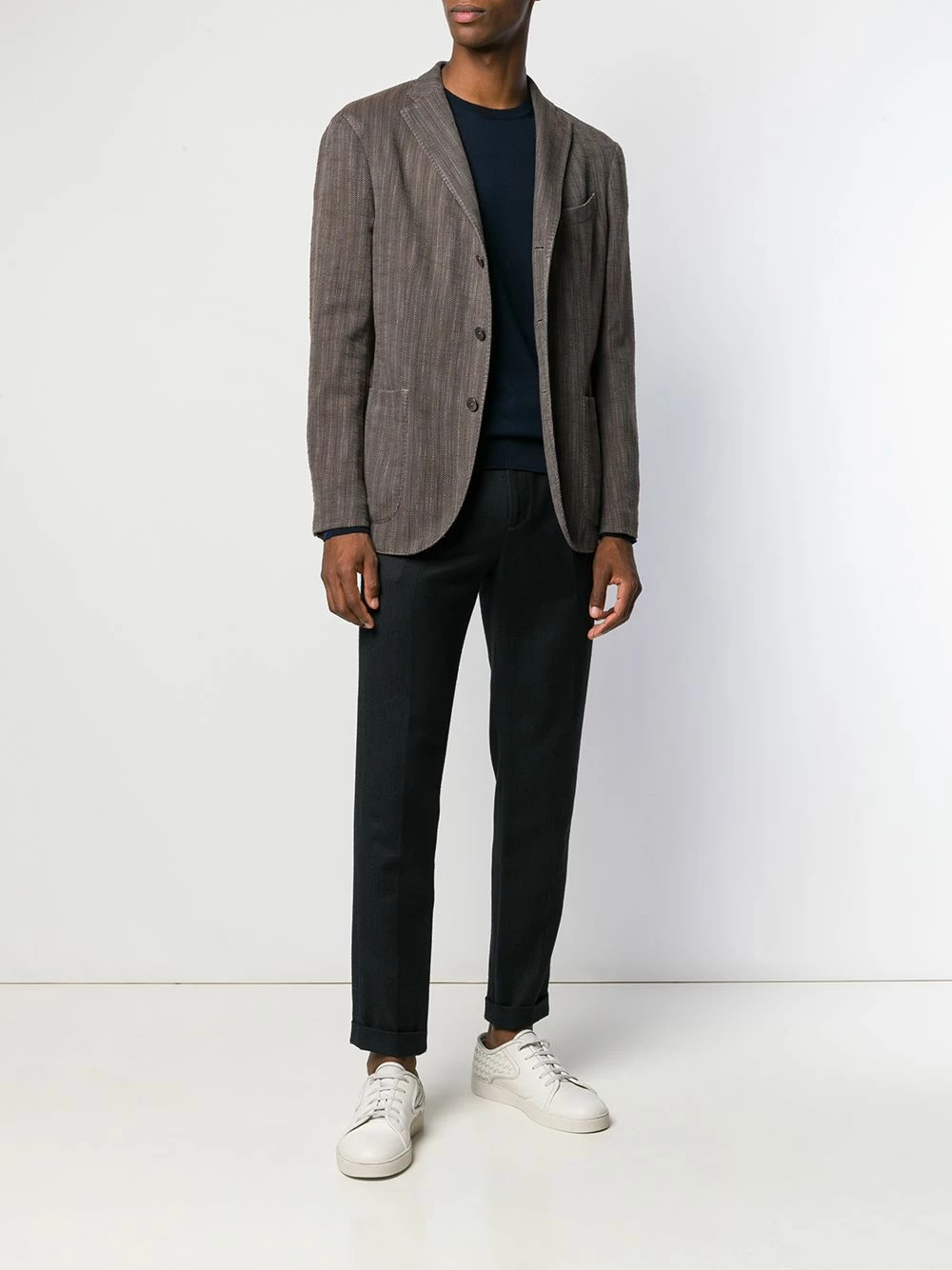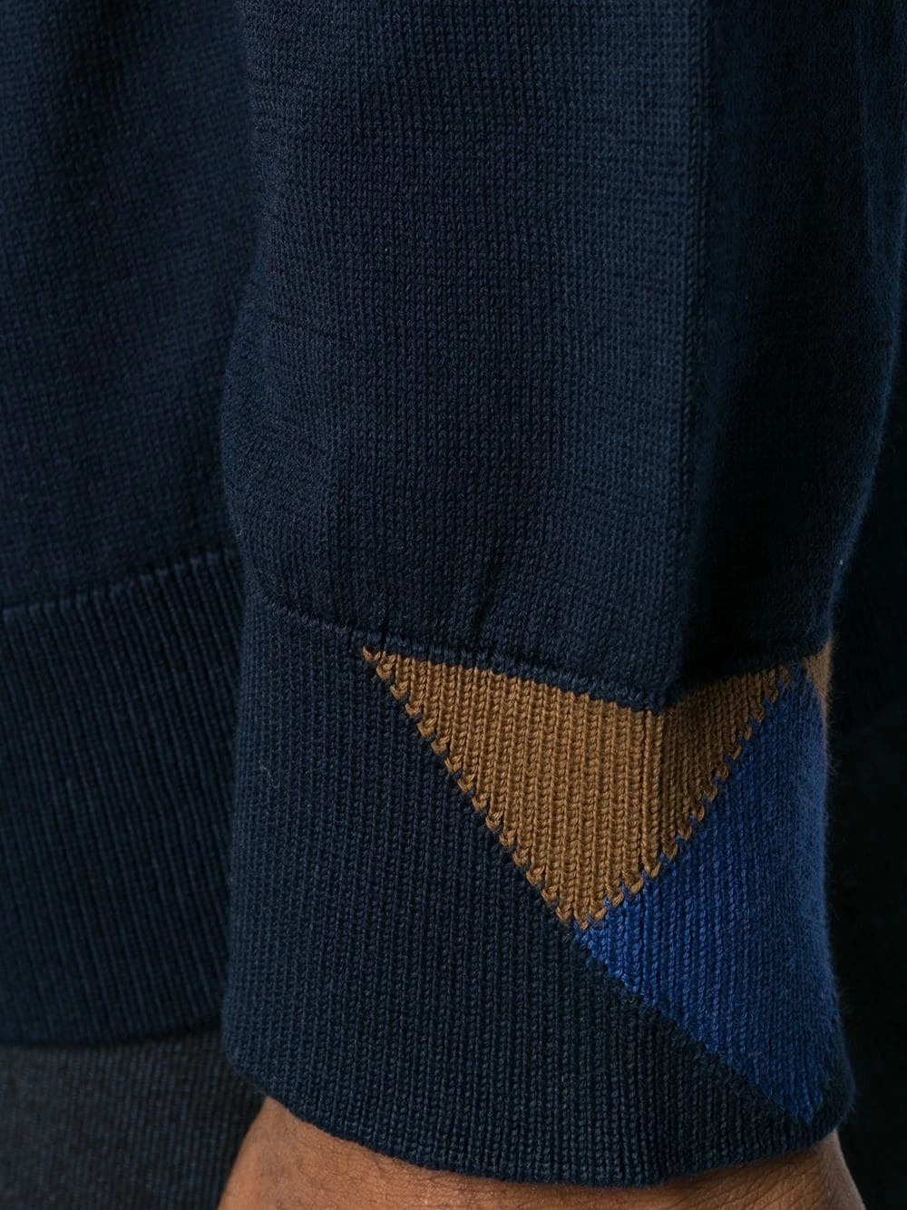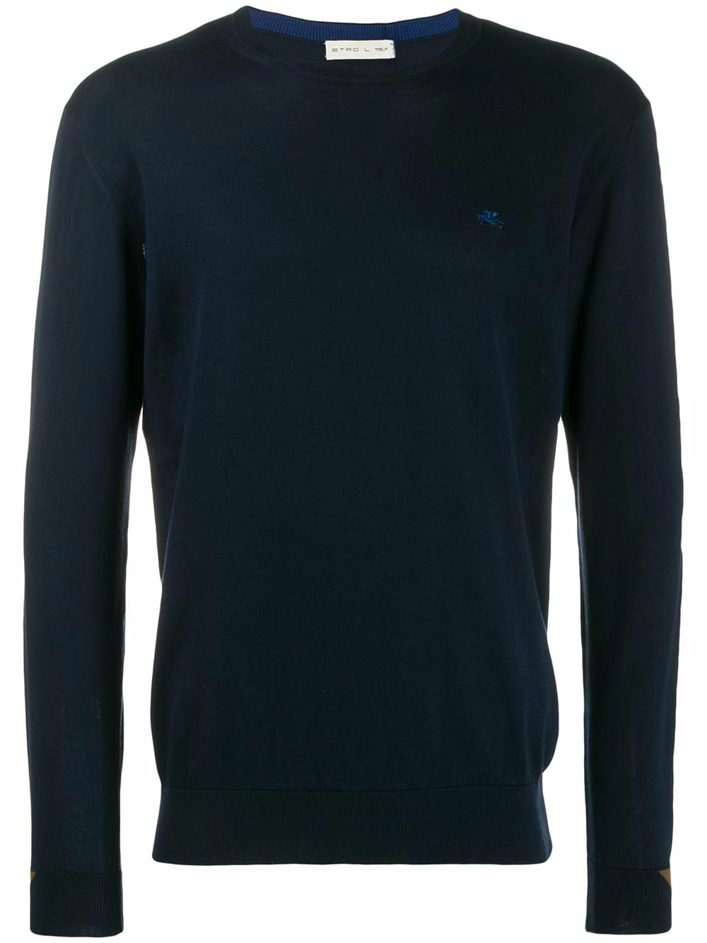 Pull à détail contrastant en coton Etro avec encolure ras du cou nervurée, logo contrastant brodé sur la poitrine, manches longues, ourlet et poignets nervurés et coupe slim. Couleur : bleu.
